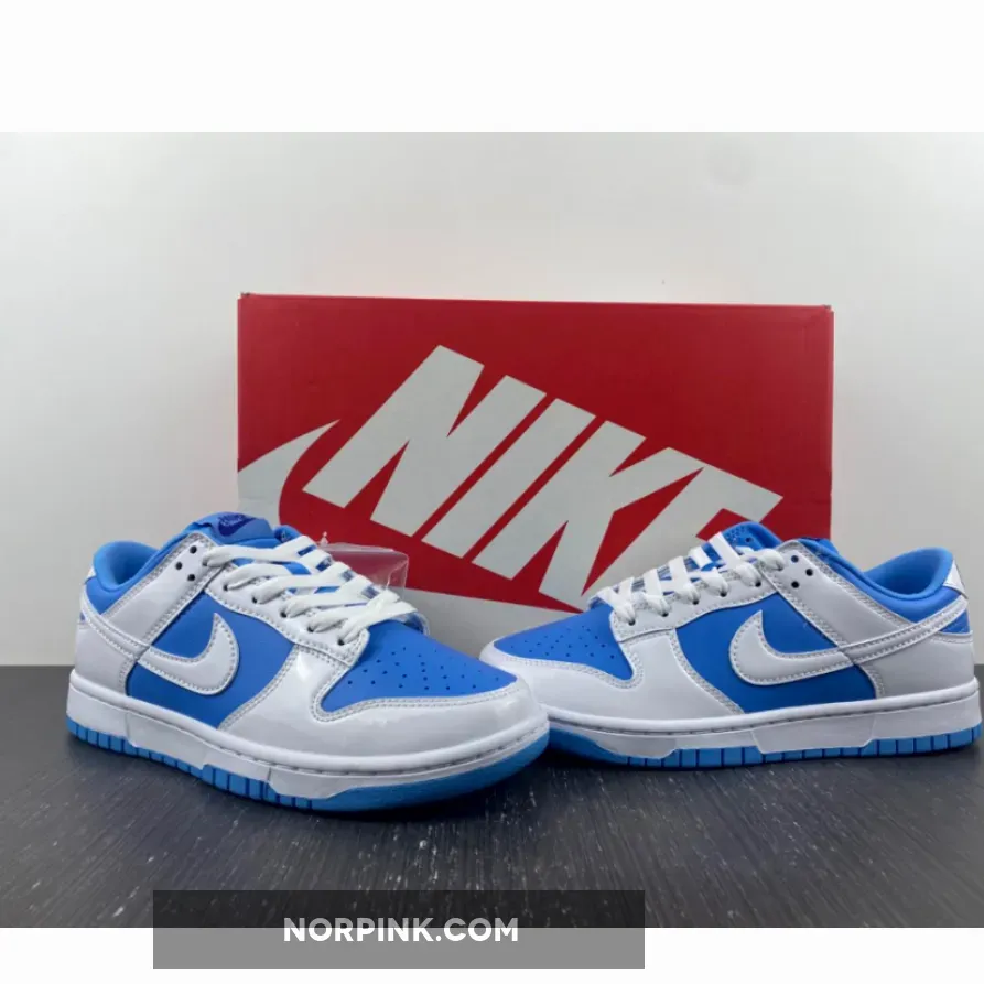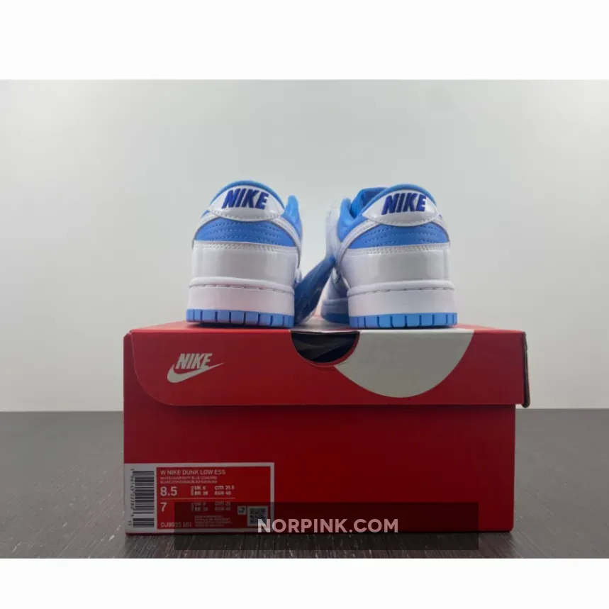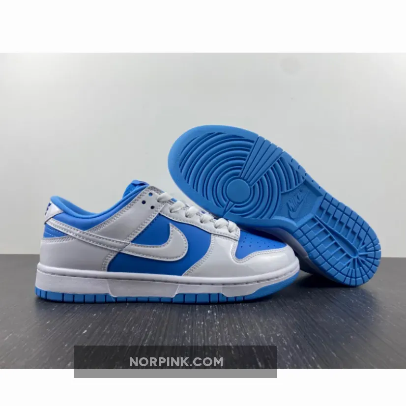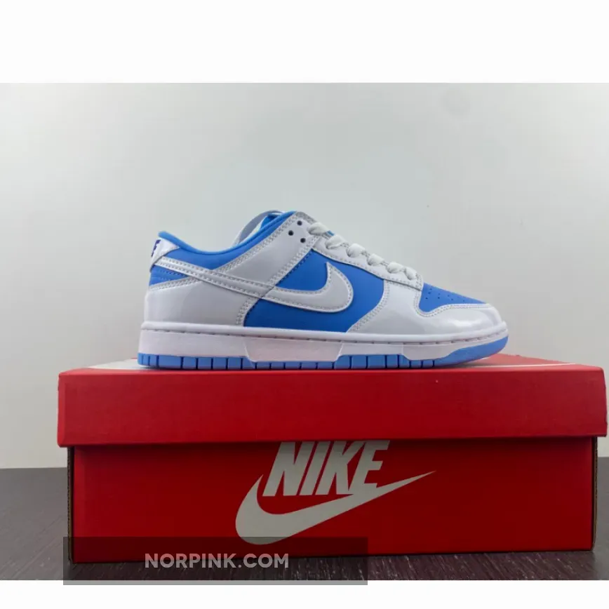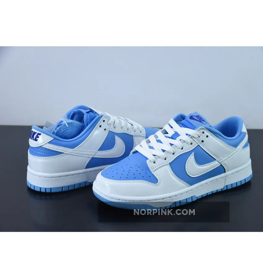 As its moniker suggests, the Nike women’s Dunk Low ‘Reverse UNC’ delivers a play on the ‘UNC’ Dunk from 2021. The leather upper features a Carolina blue base with contrasting white overlays and a color-matched Swoosh. A Nike wordmark is embroidered in navy lettering on the white leather heel tab, while a woven Nike tag embellishes the breathable nylon tongue. The low-top is underpinned by a traditional rubber cupsole that pairs white sidewalls with a blue rubber outsole.