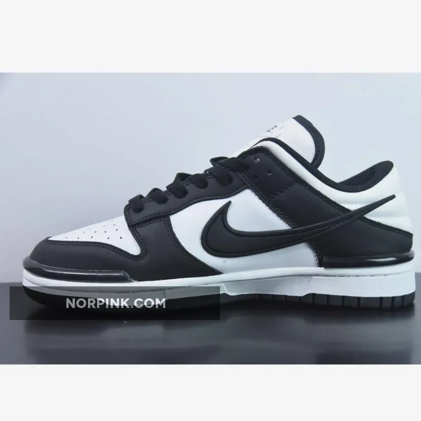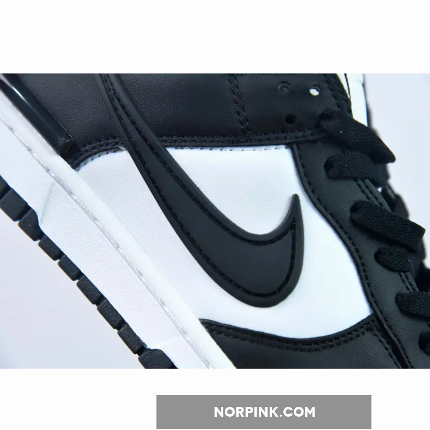 Our first look at the Nike Dunk Low Twist in the Panda colorway shows the obvious which is the traditional Panda color blocking found throughout the leather upper. Smooth white leather underlays begin the design, hitting the perforated toe boxes, medials, and exaggerated heel counters. Black pebbled leather counteracts casually adorning the opposite overlays.