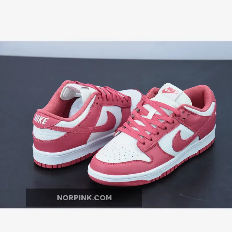 The Nike women’s Dunk Low ‘Archeo Pink’ applies classic two-tone color blocking on a performance hoops shoe turned streetwear staple. Rendered in a clean white base with dark pink overlays, the all-leather upper features standard design elements, including a perforated toe box, padded mesh collar and nylon tongue. The latter is accented with a woven Nike tag, while an embroidered Nike wordmark adorns the heel tab. Underpinning the low-profile silhouette is a rubber cupsole that pairs white sidewalls with a pink rubber outsole.