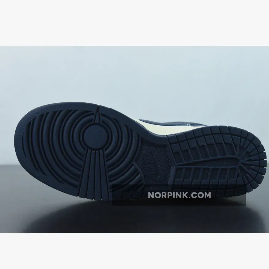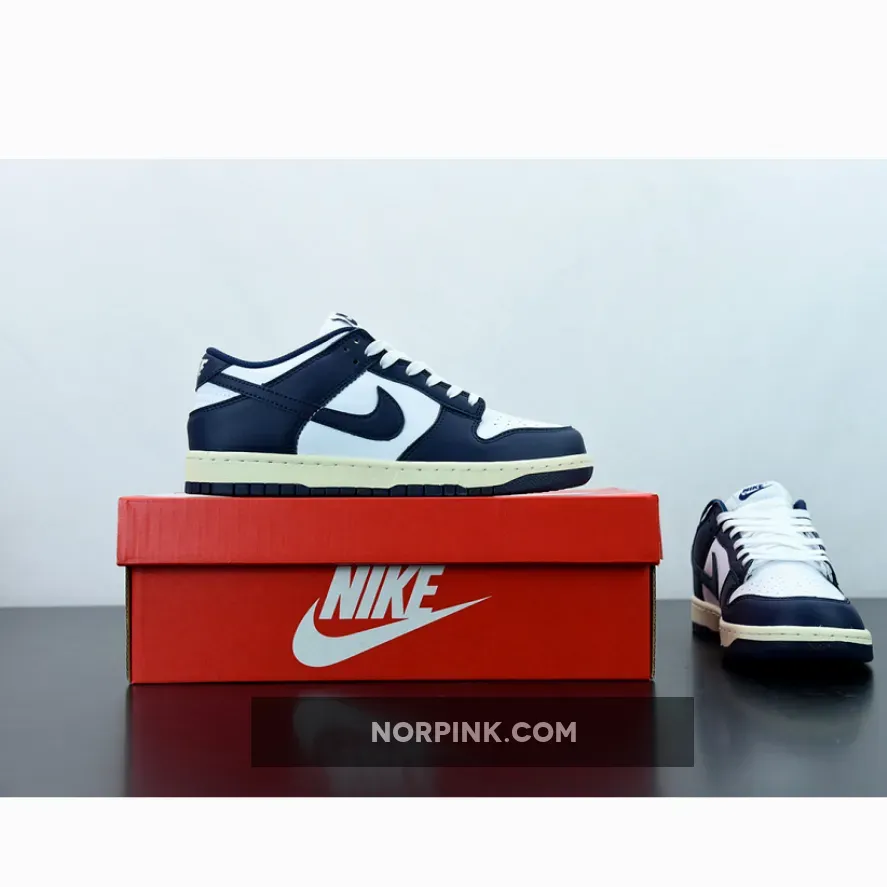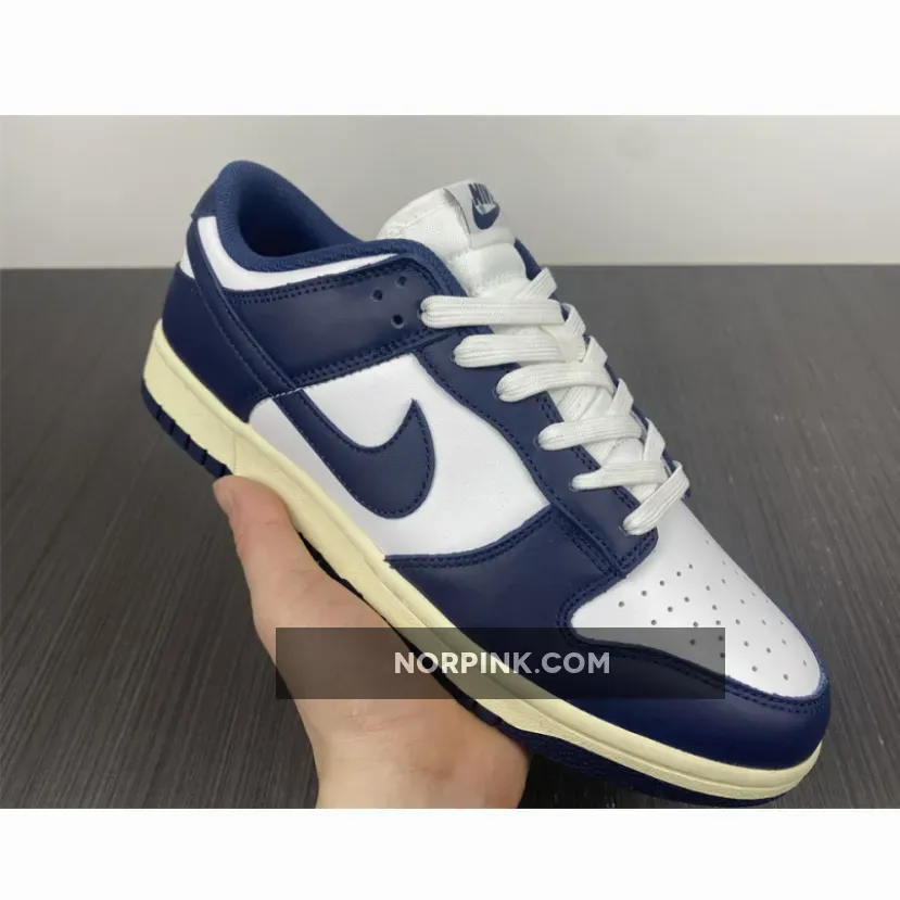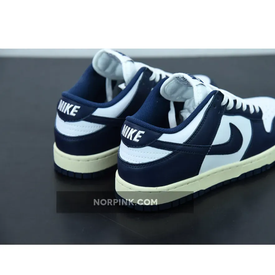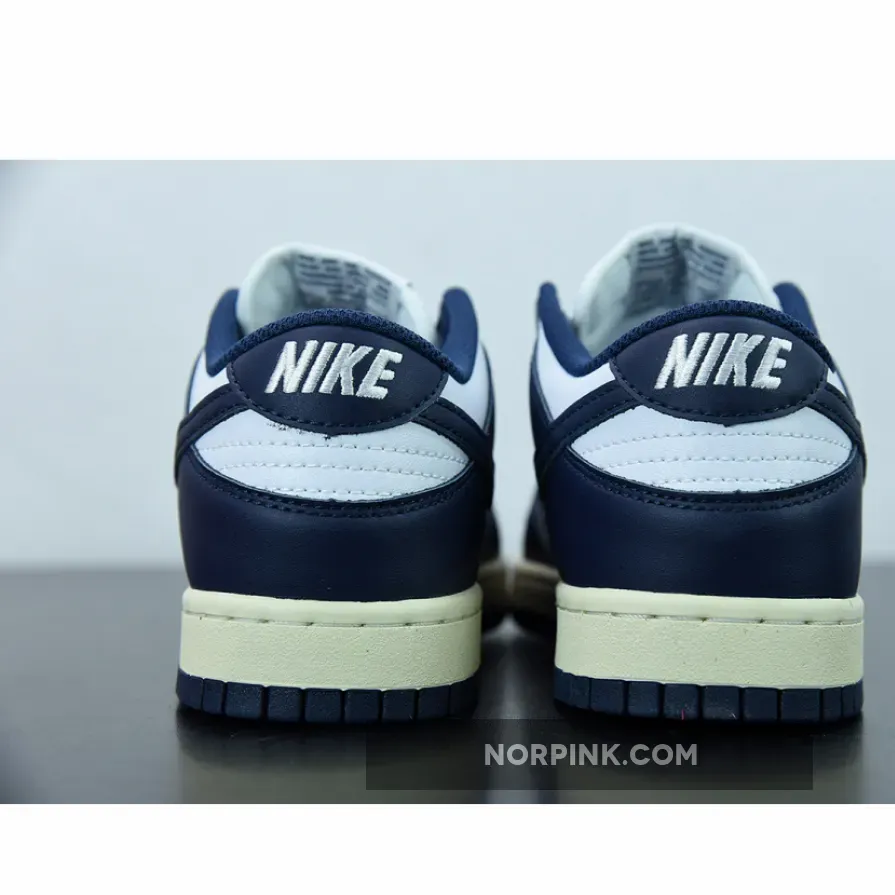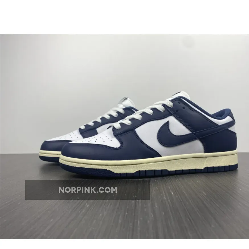 Old is Nike’s new “new.” You’ll definitely notice it on the Nike Dunk Low Navy White. This pair’s vintage-looking soles are not entirely new, though. Nike already did it with the “Be True to Your School” colourways.