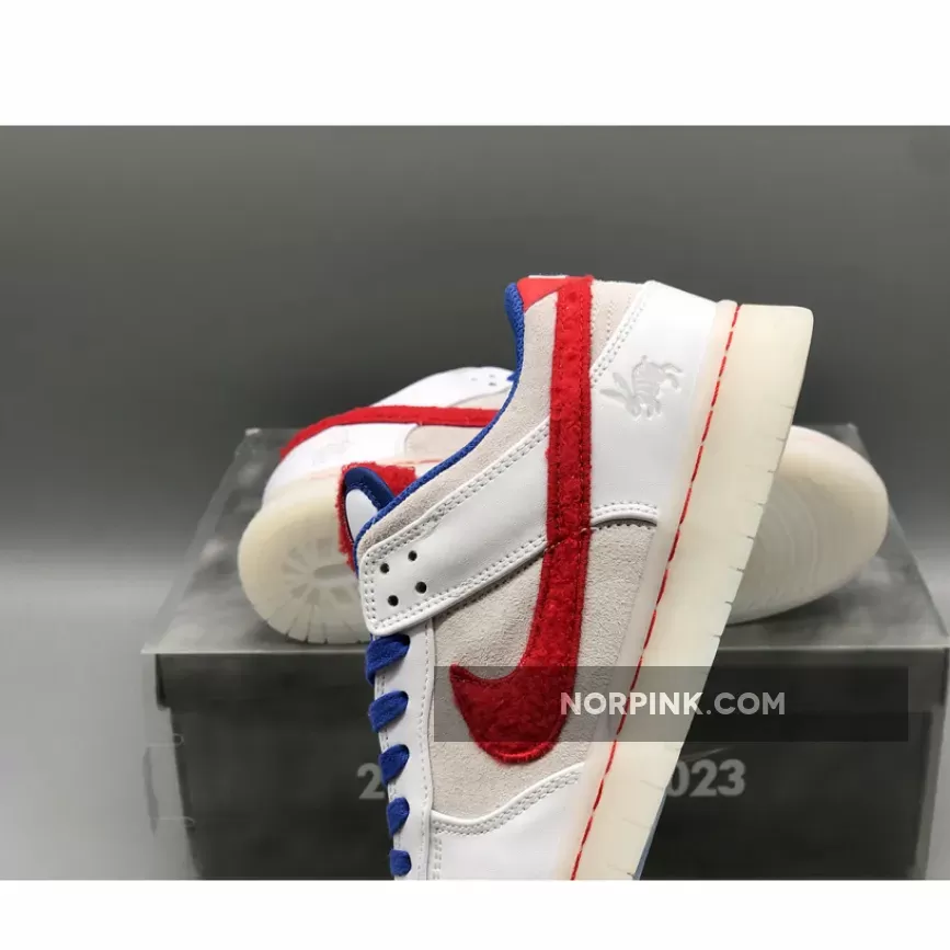 Nike holds its gaze to the east with this addition to the Chinese New Year line-up. This Dunk Low is not only inspired by this year’s Chinese Zodiac but throws it back to the 2011 “Year of the Rabbit” Air Force 1. This iteration, like the AF1, is based on one of China’s most popular candies that also has a long history with the country’s tastebuds. Sneakerheads will be licking their lips at this Year of the Rabbit Dunk, a reaction only partly down to its tasty colour blocking.Experience a sense of nostalgia with these on your feet, reflecting on all the memories you made in the Air Force 1 version from 2011 that will inevitably have you thinking that those were indeed, simple times. For those of you who can’t rely on fond memories, don’t worry because Nike has gone one step further by writing the year underneath the translucent outsole. Above, the upper is adorned with red and blue faux-fur Swooshes, blue laces and red tongue labels, just as it was all those years ago. Inside, the rabbit graphic is printed onto the insoles, a detail that links the Dunk to the rest of the CNY iterations of the pack.
