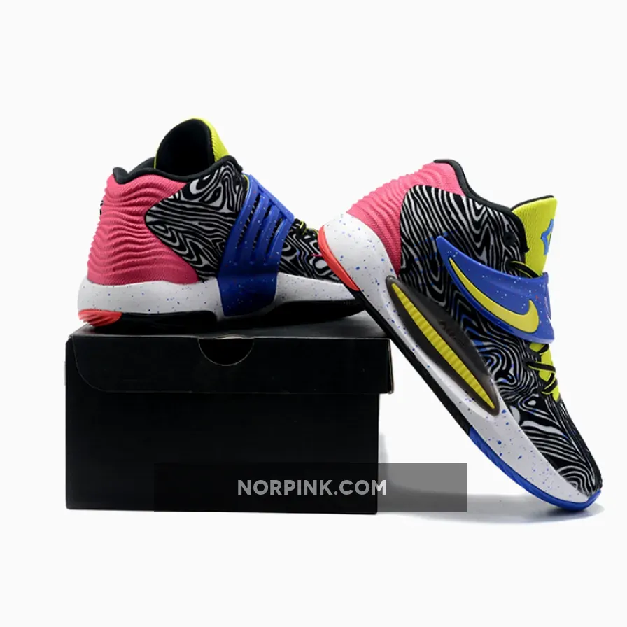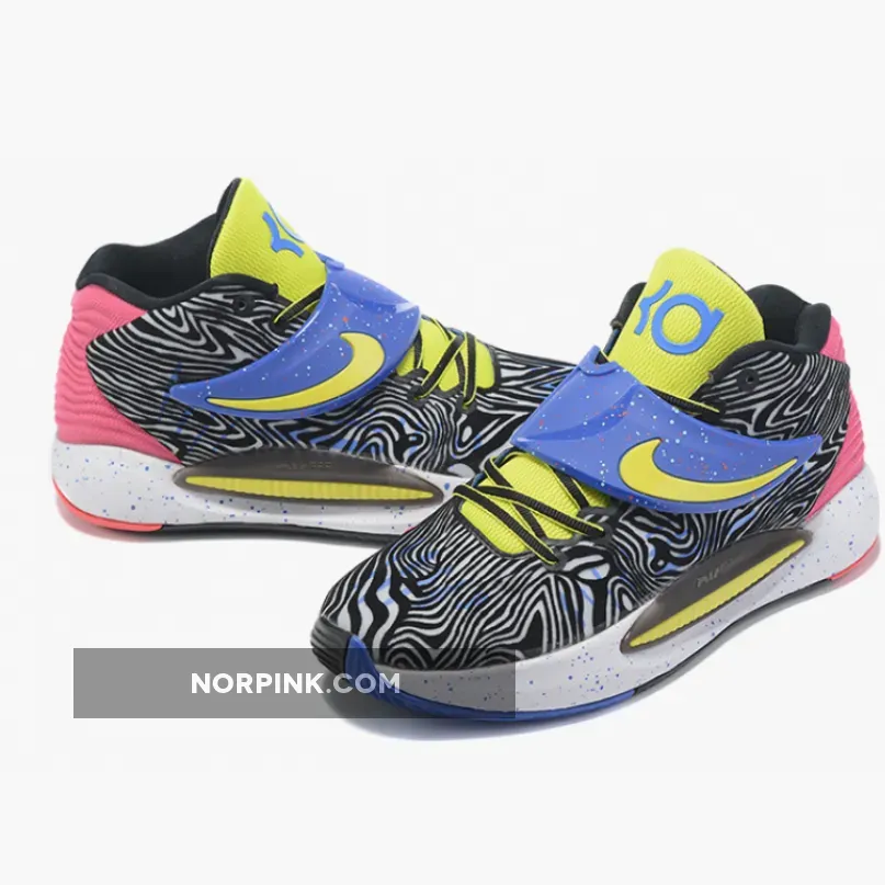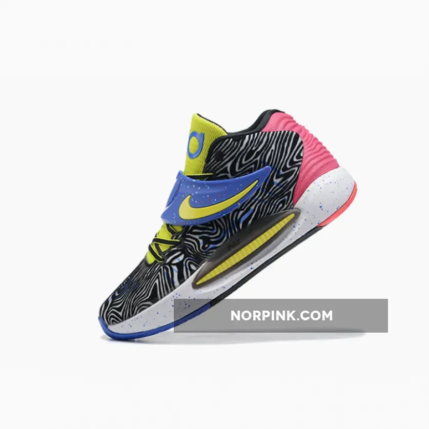 Bold colorway, stylish design, comfortable materials. Perfect for dominating the court. #NikeKD14 #PopArt #BasketballShoes
