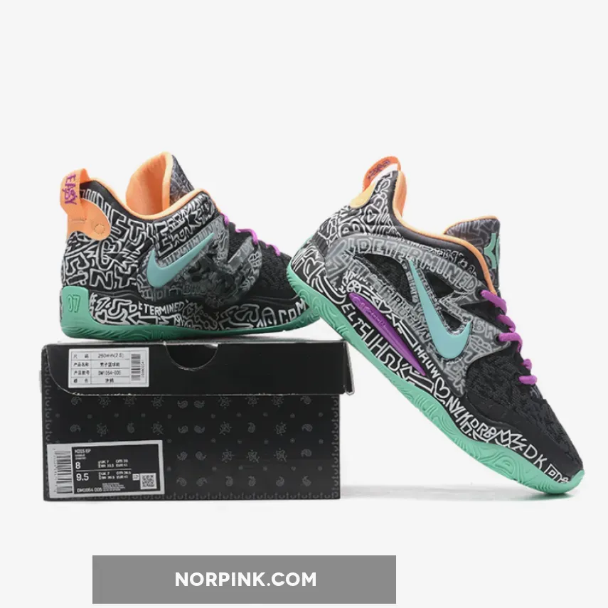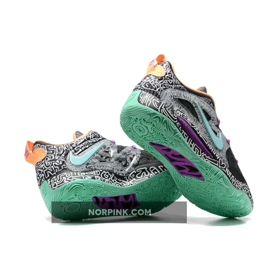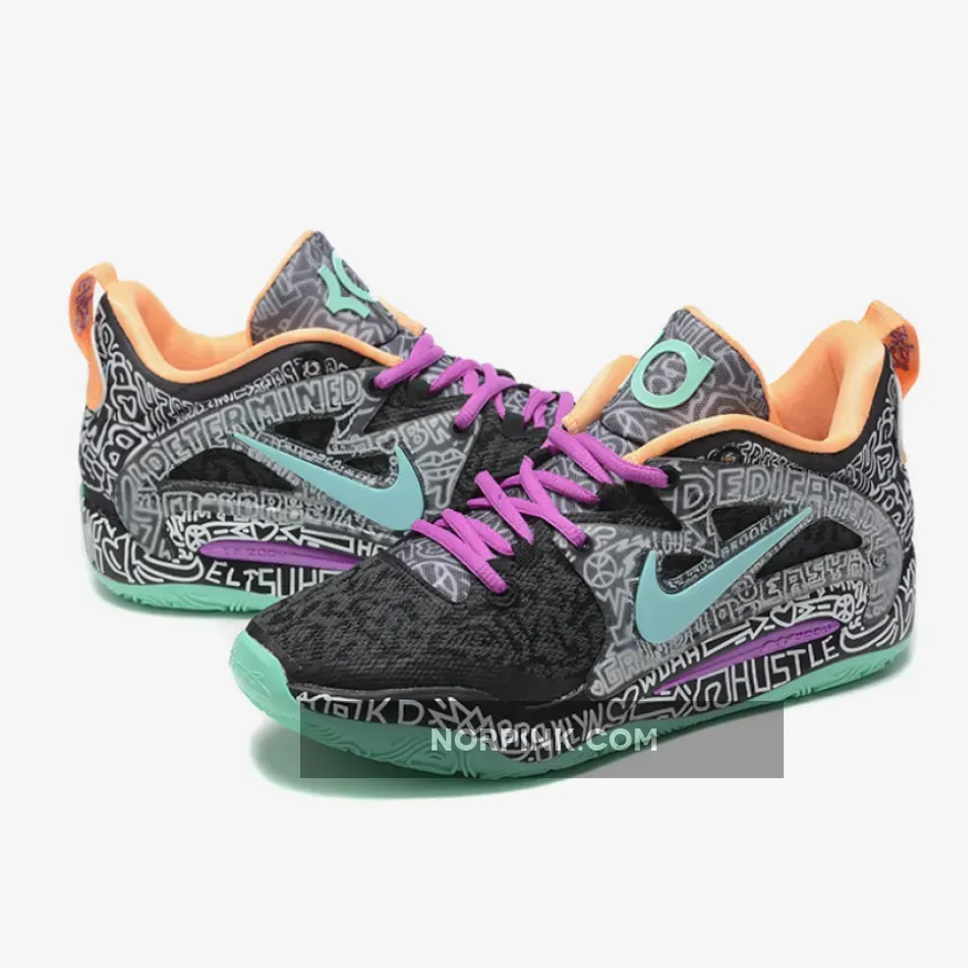 the Nike KD 15 “Brooklyn Graffiti” boasts “Wolf Grey” and “Light Crimson” doodles on the breathable mesh upper, which additionally follows onto the TPU exoskeleton overlays and tongues. Contrasting purple, mint green, and a peachy orange help accent the laces, Swoosh branding, outsole and liner. Lastly, “KD” and his “07” number arrive on the lower heels, while a Zoom Air cushioned sole helps round out the overall design cues.