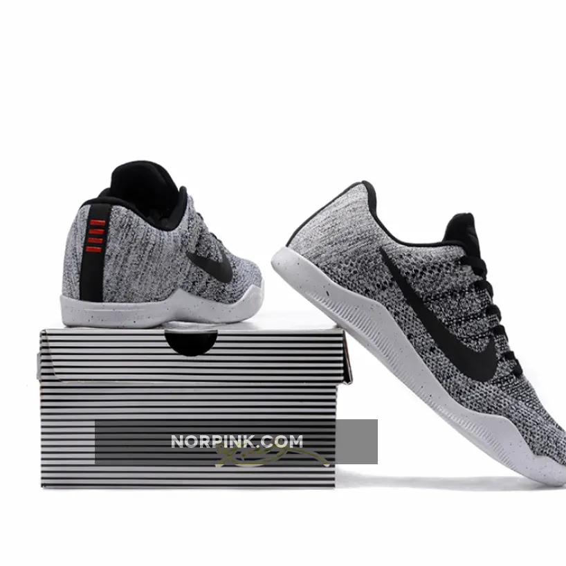 Dressed in the classic White and Black color scheme. This “Oreo” edition of the Nike Kobe 11 features a full Nike Flyknit upper with bold Black detailing on the tongue, lining and Nike Swoosh logos. Speckled detailing on the midsole completes the look and theme.