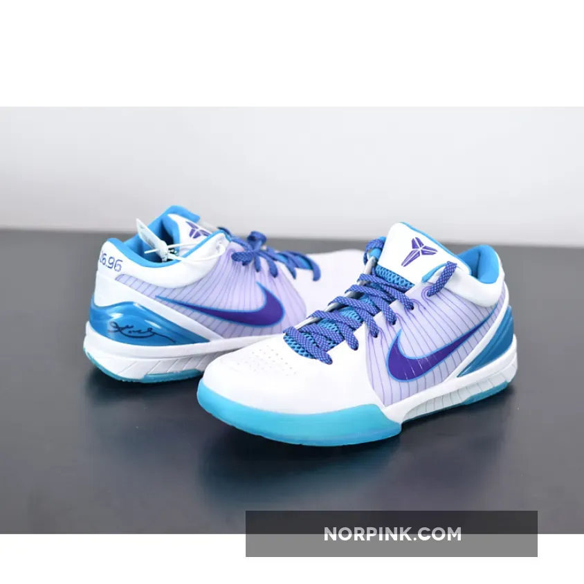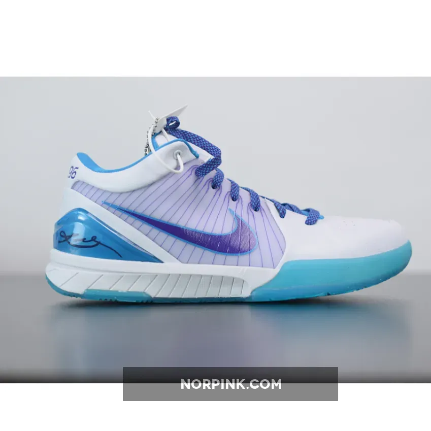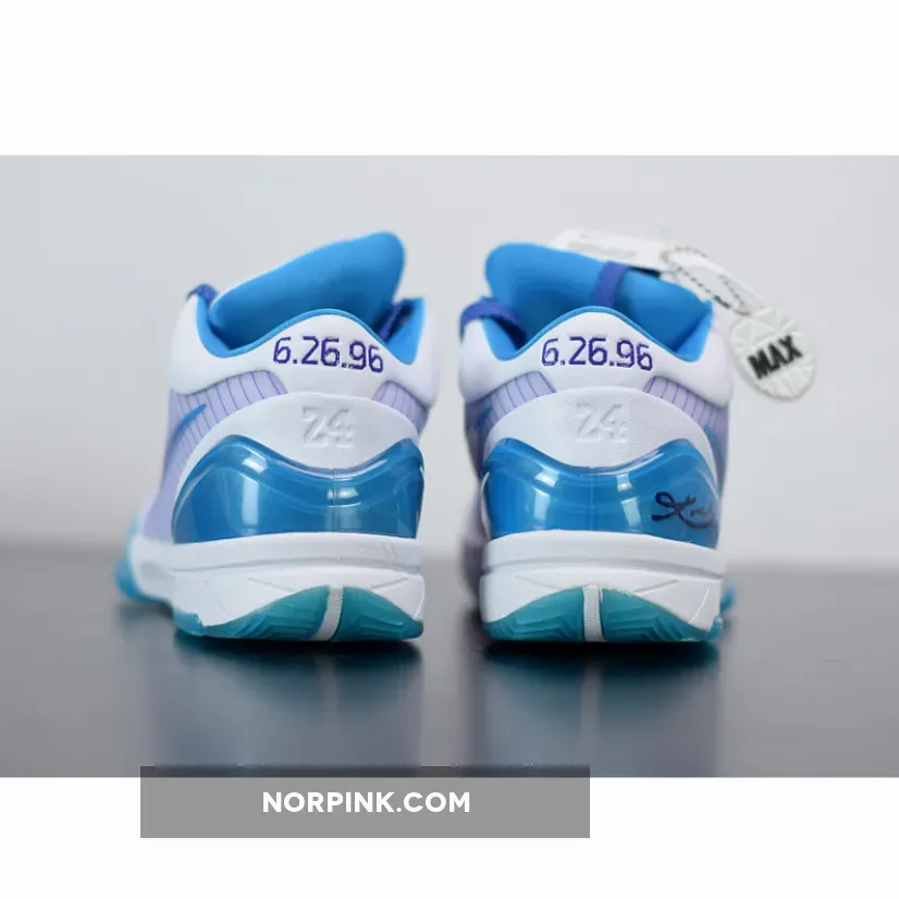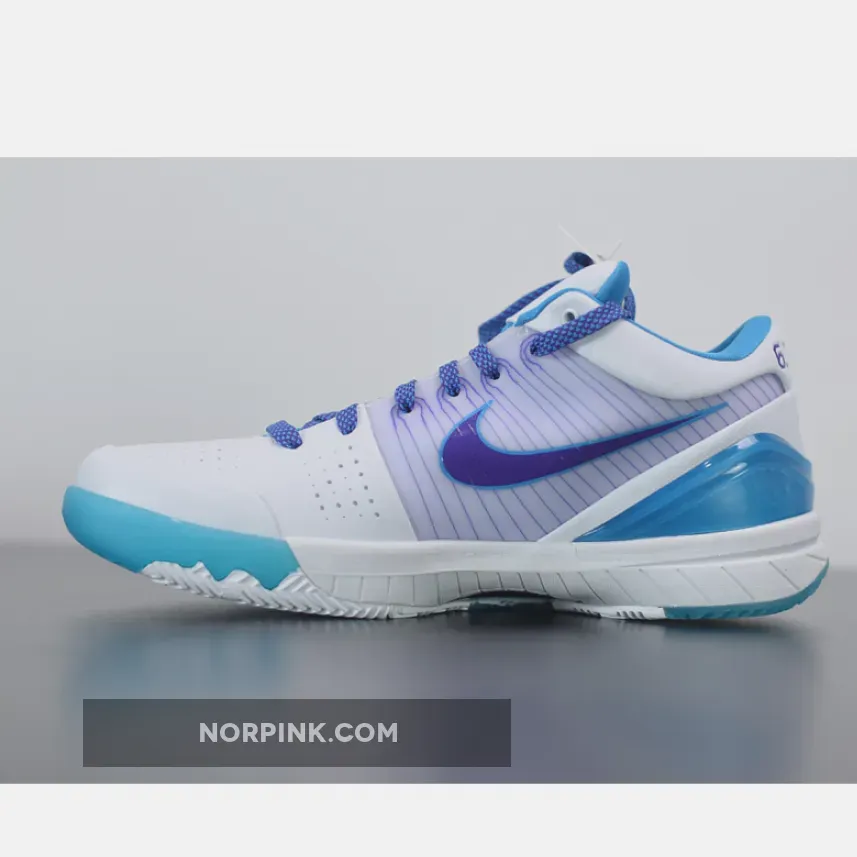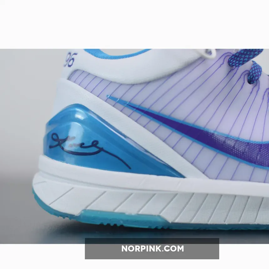 Dressed in a White, Orion Blue, and Varsity Purple color scheme. This Nike Kobe 4 Protro is expected to be the popular “Draft Day” colorway. The shoe features a White upper with Blue and Purple accents as a nod to Kobe Bryant originally being drafted by the Charlotte Hornets in 1996 before getting traded to the Los Angeles Lakers.