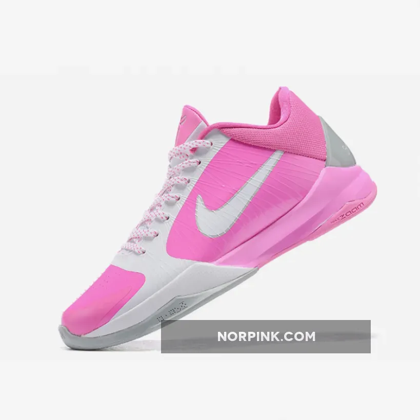 Dedicated to raising awareness for the Kay Yow Cancer Fund, this “Yow Think Pink” edition of the Nike Kobe 5 features an all-Pink base upper with metallic silver Nike swoosh branding on each side that also includes gray detailing on the heel tab and midsole.