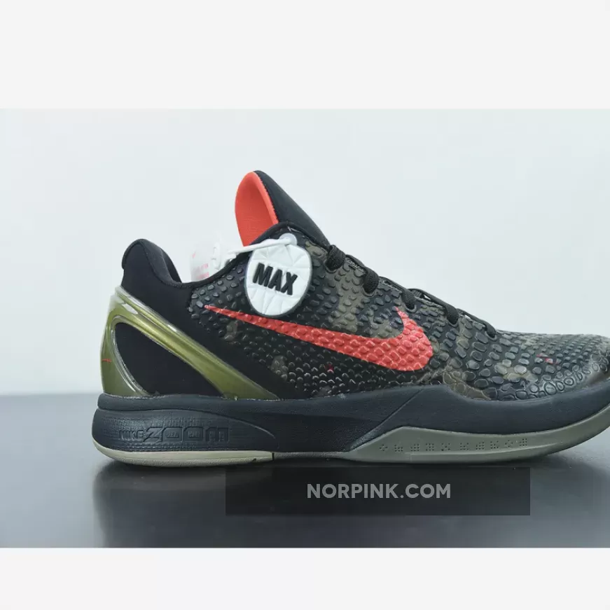 ‘Camo’ Nike Zoom Kobe VI colorway to surface, which falls in line with traditional camouflage print seen on military uniforms and hunting gear. Black works the tongue, inner liner, heel and midsole, while olive handles the heel counter and outsole. Offering sharp contrast to the camouflage look are hits of vibrant crimson red, which appears throughout the upper’s print and pop off the Swoosh logos, Shozoku and tongue liner.