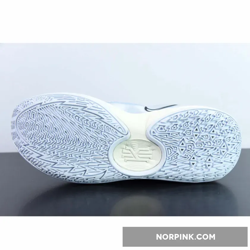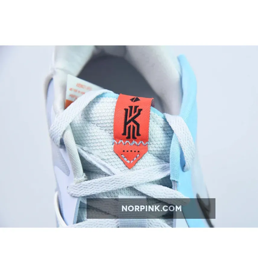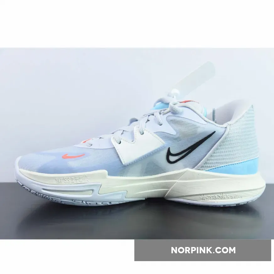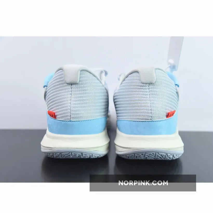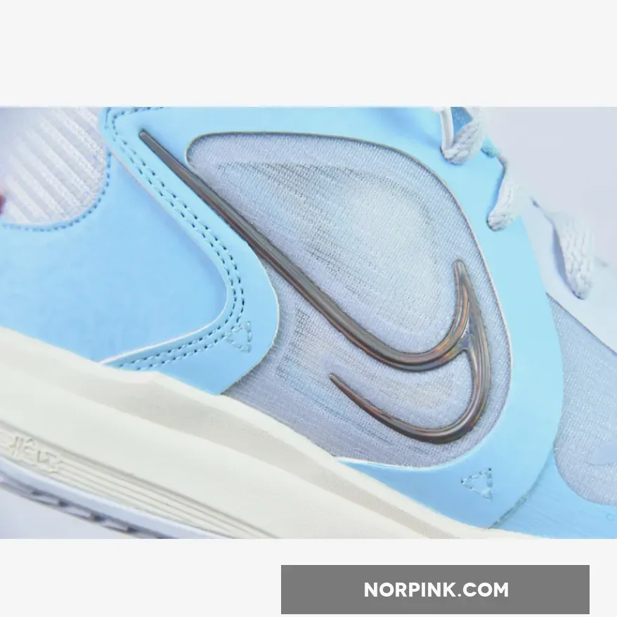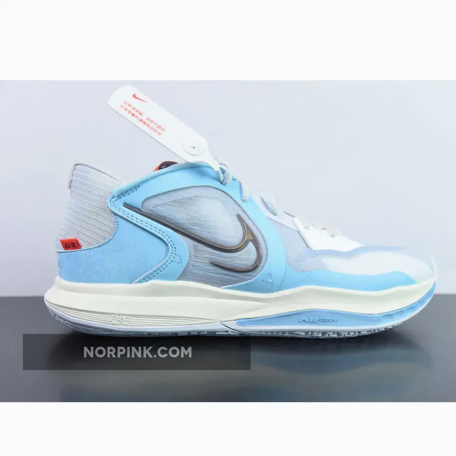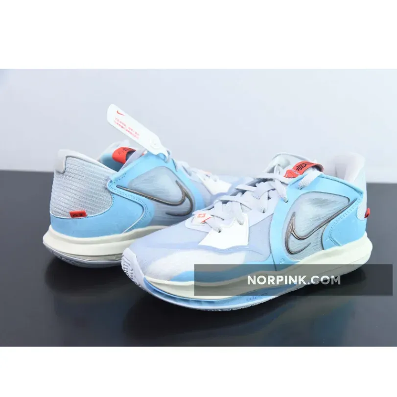 This Nike Kyrie Low 5 features an icy color scheme seeing its mesh and mixed textile base dressed in light grey while contrasting hits of light blue dress the overlays.