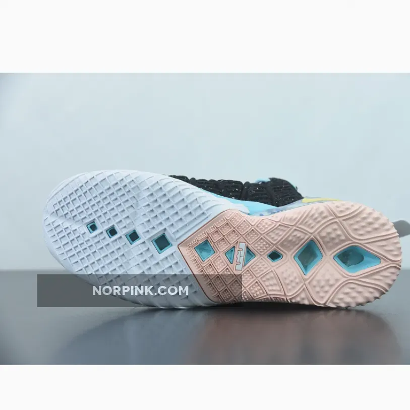 The reflection theme is expressed through slightly altered colors on the left and right shoe, with variations on the sole, logos, heel tab and laces. Iconography representing his 17 seasons to date creates unique collages that appear as graphics on the heel, tongue and sockliner. With a lightweight black Knitposite 2.0 upper, durable molded heel clip, new Air system in the tongue and a full-length Air Zoom unit combined with a Max AIR unit in the heel, this game-changing design elevates the LeBron signature line to the next level.