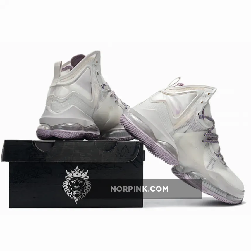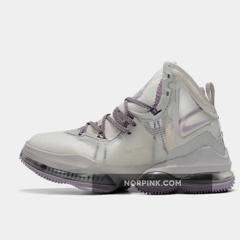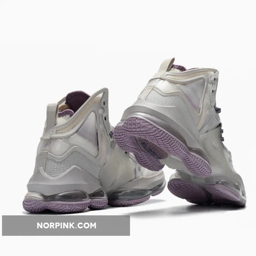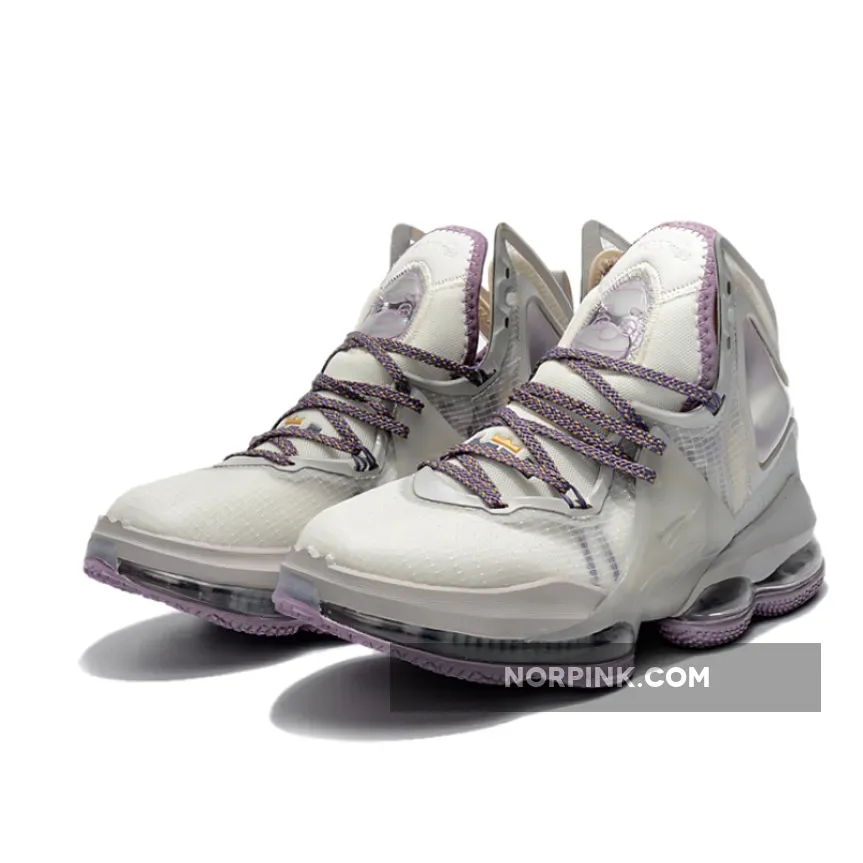 The model is dressed in an off-white color that covers the full layer top, the outer plating, and the midsole, while the fading purple color compliments the shoes well through the laces, inner lining, and outsole. Lastly, the tongue serves as a platform for the Strive For Greatness motto, with a cartoon character that resembles LeBron James himself.