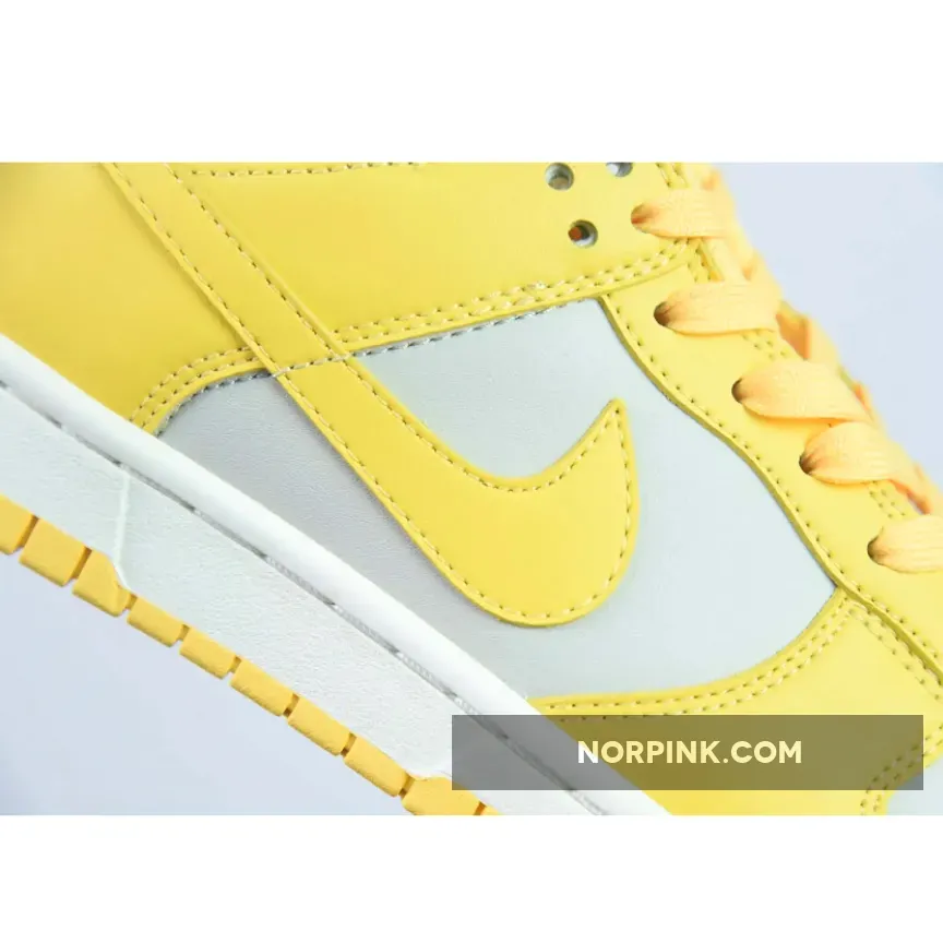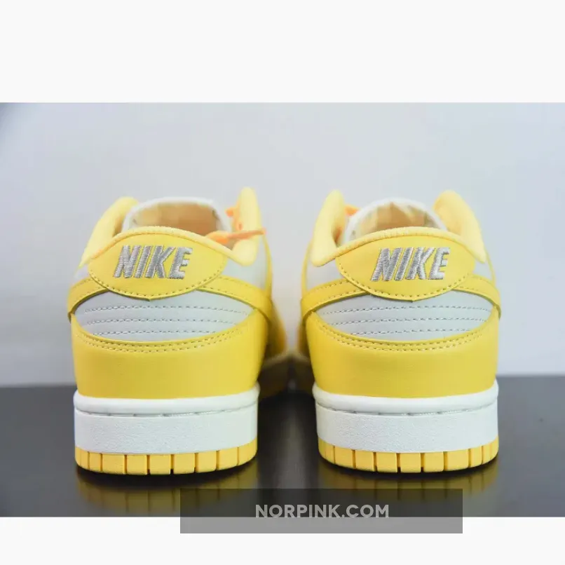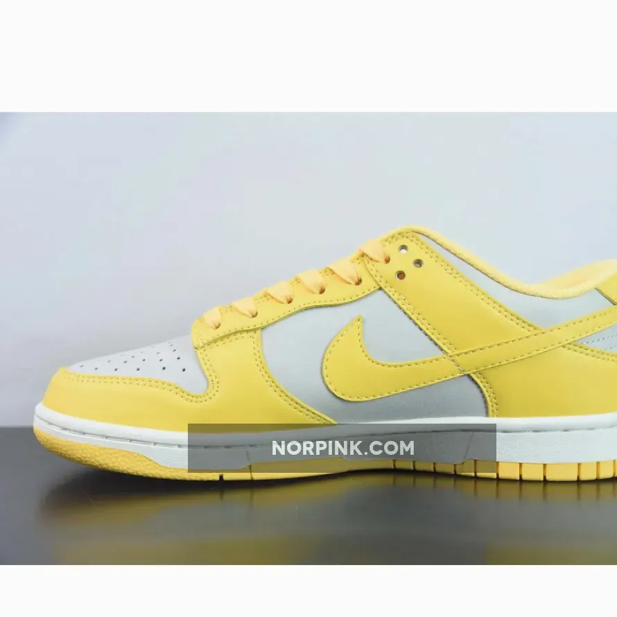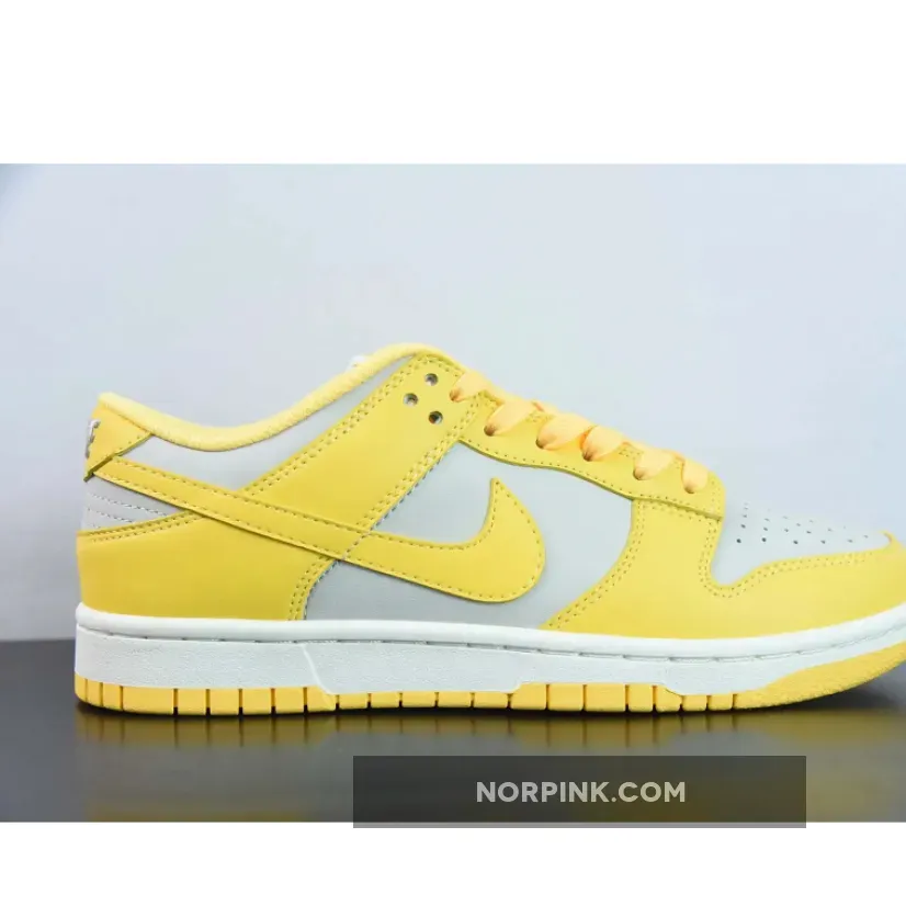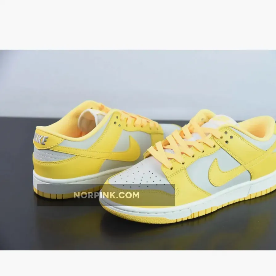 Covered in an official color scheme of Light Bone, Citron Pulse, and Sail, this Nike Dunk Low features a full leather build on the upper with a light grey seen on the base and the highlight Citron Pulse noted on the overlays, Swooshes, and inner liners. In complement, the midsole below features “Sail” through its sidewalls, while the overlays, laces, and outsole opt for the titular yellow.