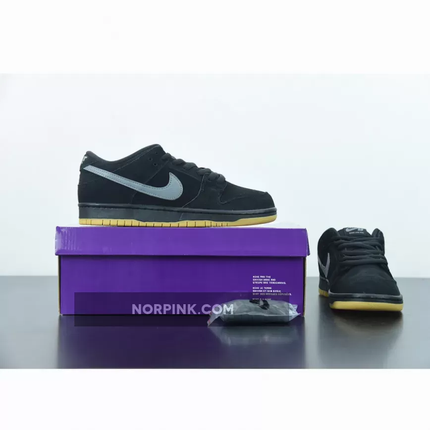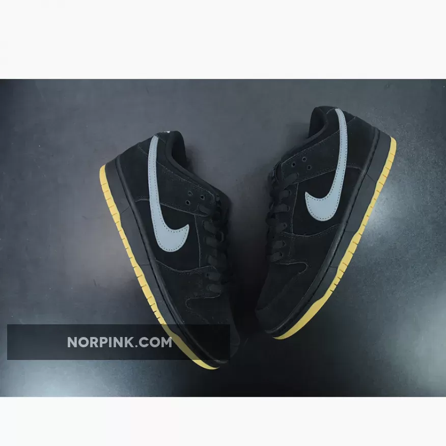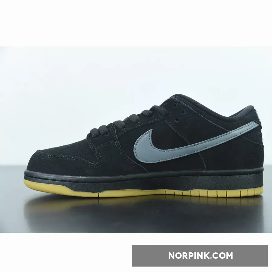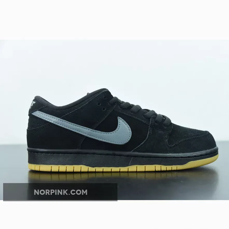 The upper is a fuzzy all-black suede from toe to heel, including the laces and the collar lining. Standing out against this dark backdrop is a profile Swoosh in light grey tumbled leather. This all-black ensemble sits atop a caramel gum outsole, finishing the look. Nike SB branding in light grey is on the tongue tab while a silver Nike text logo is embroidered on the black suede heel tab. Use our Nike Dunk size guide to know how it fits.