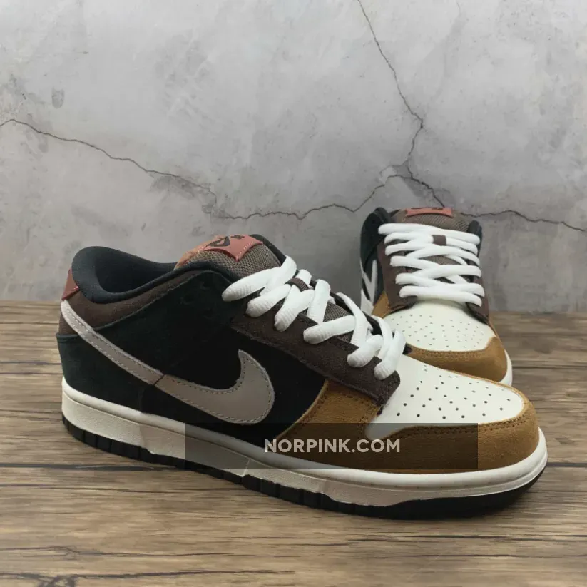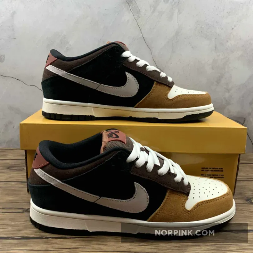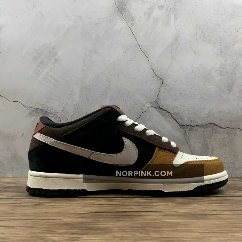 These Dunk Lows were created as a tribute to the late Joe Strummer, guitarist and lead vocalist for legendary British punk band, The Clash. They feature a multi-colored suede and leather upper in a black, metallic zinc, brown, curry and cream color combination.