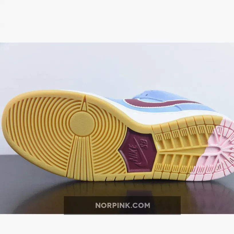 The “Phillies” SB Dunk Low dons a predominantly light blue color scheme that’s offset by burgundy hits on the Swoosh branding and other Nike logos, which is reminiscent of the MLB team’s uniforms from the ‘80s. Aside from its inspiration, the offering features an all-suede upper with team red Nike Checks outlined with white leather trimming. This theme is whimsically designed to show a Big League Chew mark on the heel. Behind the tongues feature the Liberty Bell on one tongue with a Philly Cheesesteak on the other. Additional highlights include a bubble gum graphic on the gum sole.