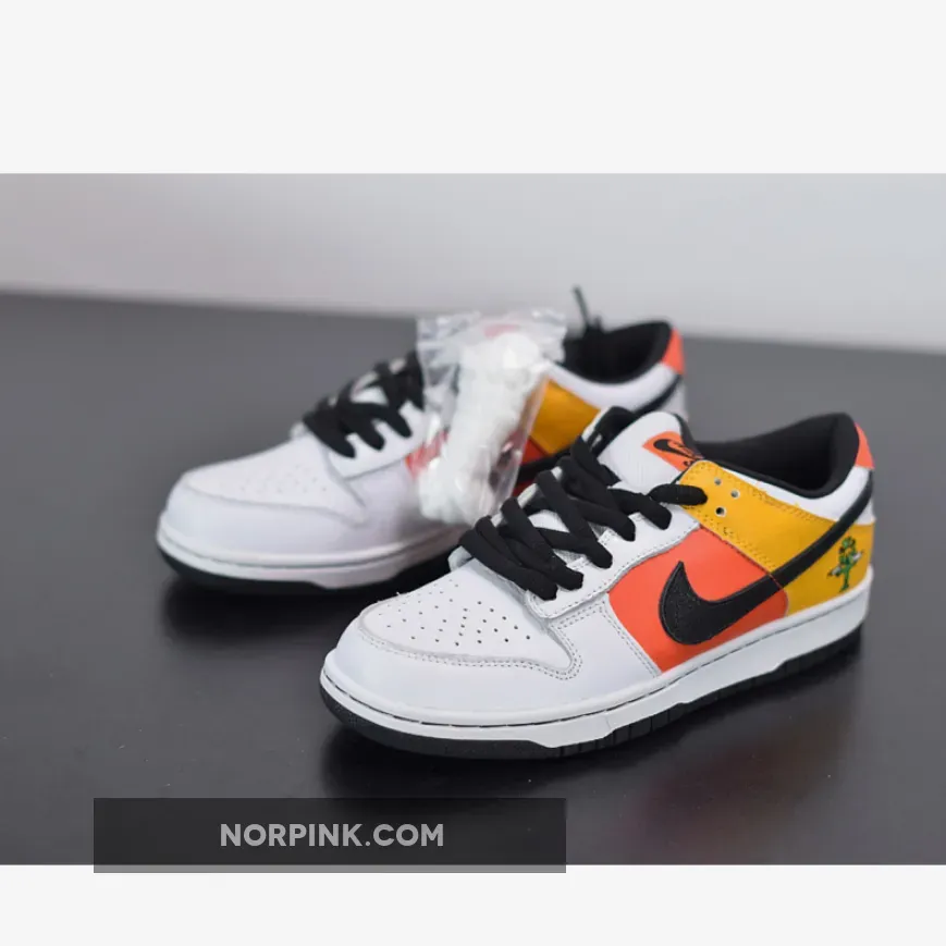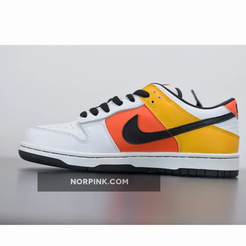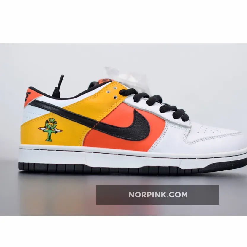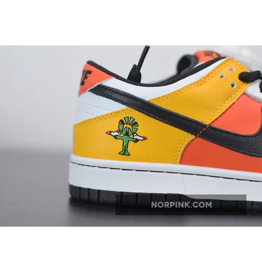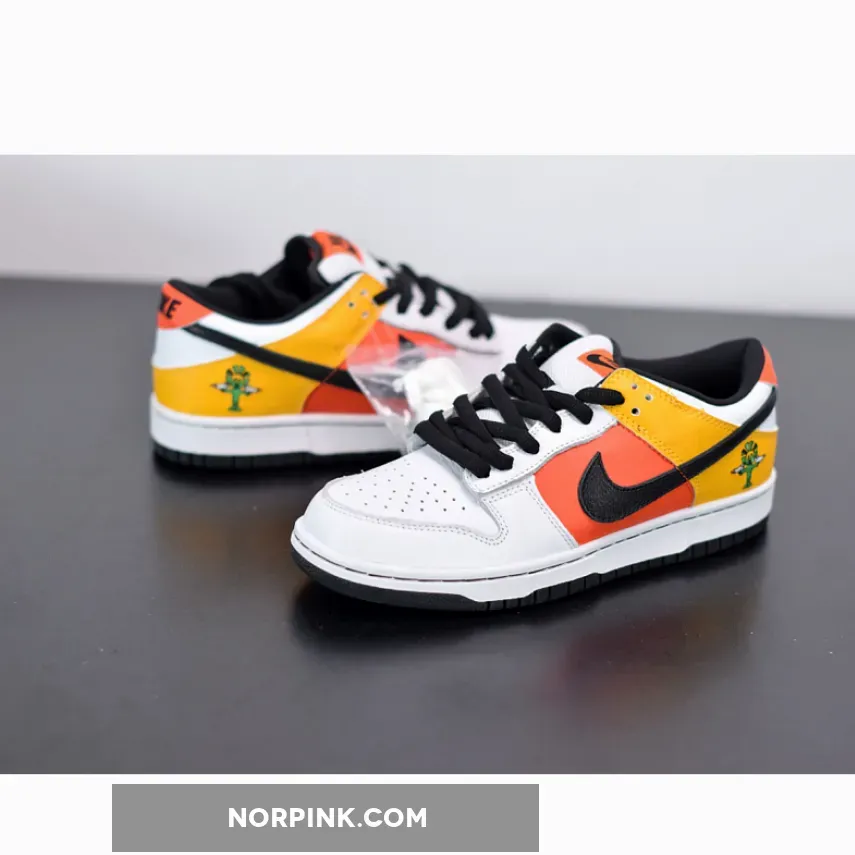 Definitely an interesting shoe, the Home Rayguns were designed by famed shoe customizer Methamphibian. He took inspiration from Nike’s made-up ABA team, the Roswell Rayguns, and actually painted this design on a pair of Air Force 1s. The design soon made its way to the Nike Dunk SB. This team, led by the fly Dr. Funk, who was portrayed by Vince Carter, was the center of a number of Nike ads during the 2002 NBA Playoffs. Jermaine O’Neal, Paul Pierce, Baron Davis and Jerry Stackhouse were also part of this fictional team. Not following traditional team colorways, this black-based sneaker is actually the home sneaker, rather than it being a usual white or lighter color. On the yellow heel is the Raygun logo, while the side panel is orange and the toe is black. The shoe is finished with a contrasting white outsole.