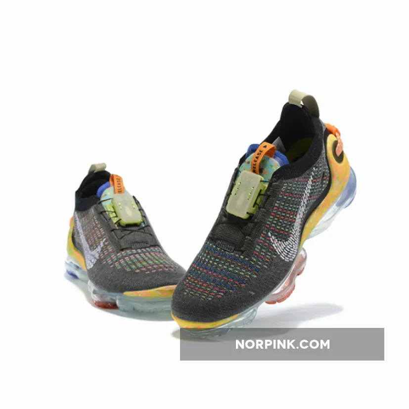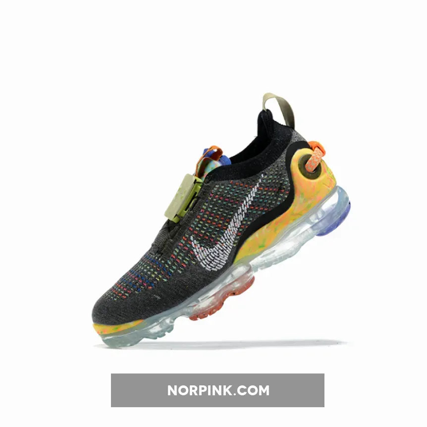 While past releases have also leaned on multi-colored accents, the ones on this forthcoming take dial to levels slightly higher in vibrance. Knitted uppers are sewn with a “Deep Royal Blue”, and interwoven with white Swooshes, tiny skittle-like boxes throughout, and a bright blue wavy overlay that runs from the midfoot to the heel. In terms of extra details, the FlyEase-marked tongues and heels alternate between a collection of neons, the former of which hosts Regrind-inspired patterns, and the midsole molds usher in marbled swirls of orange and blue against its grey backdrop.