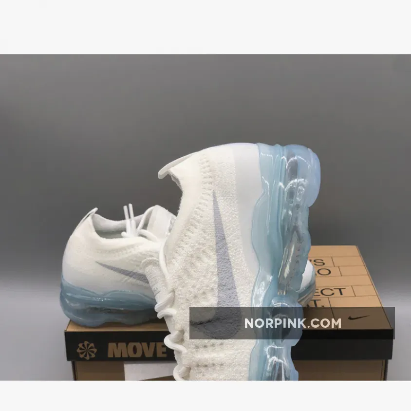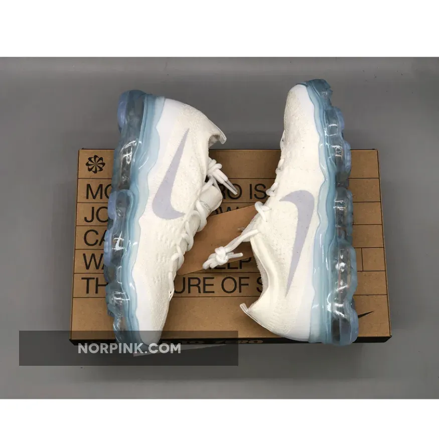 Elsewhere, the brunt of the upper is clothed in white, with the signature VaporMax bottom opting for a icy blue finish.