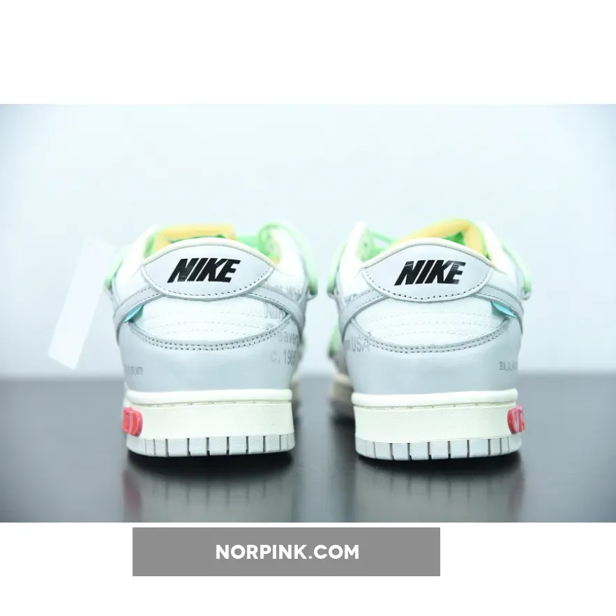 #50 interpolates familiar details and colors from Abloh’s past Nike collaborations with some fresh new details. It’s done up in black and equipped with a metallic silver Swoosh a la the Off-White™ x Nike Air Force 1 “MoMA” from 2018, while also adding the overlaid rope lacing system from past Off-White™ x Nike Dunk Low collaborations and cut-out oval detailing on the tongue that’s borrowed from the Off-White™ x Air Jordan 5.
