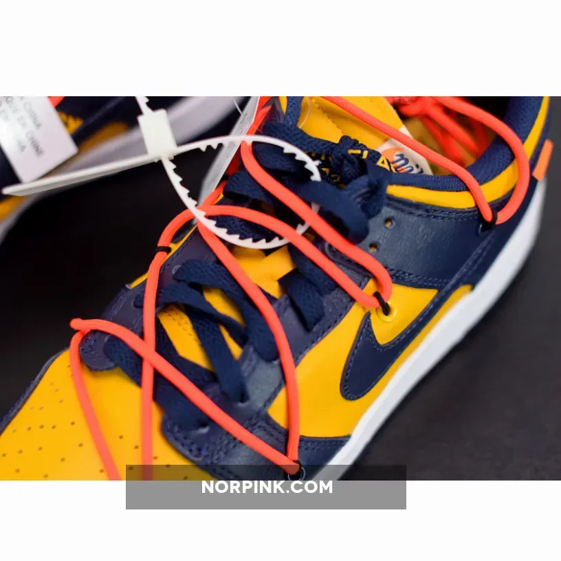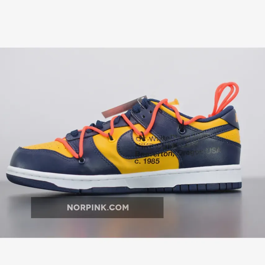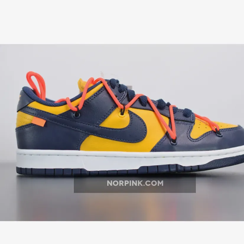 While early leaks made it look like it was inspired by the Los Angeles Lakers, in reality, the Off-White x Nike Dunk Low University Gold contrasts against ‘Midnight Navy’ hues for an opulent aesthetic that’s sure to turn heads. Like the other two colourways, the Louis Vuitton Artistic Director has completely revamped the lacing system, giving the Dunk a traditional flat one and a trail shoe-like rope one. Not only does this provide the ultimate lockdown fit, it also introduces deconstruction without being too in your face.