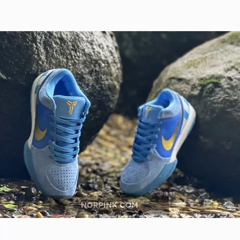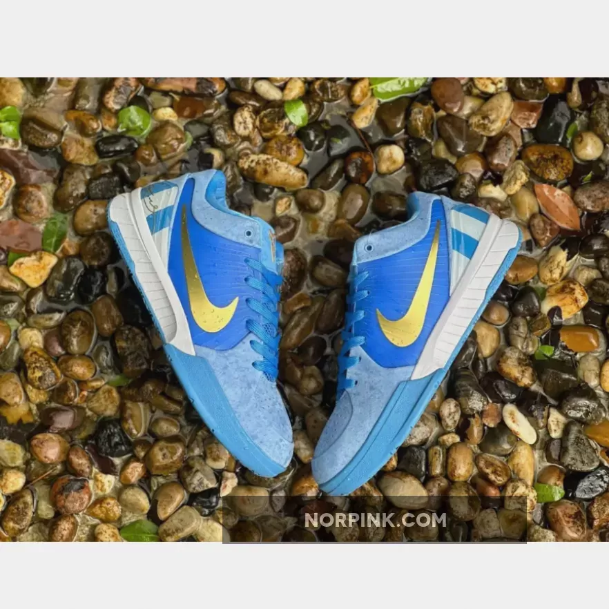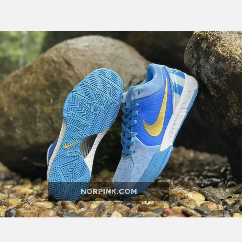 This Pair Blue hues dominate a majority of the upper real estate, save the pops of the crisp gold profile swooshes. A quilted pattern along the collar with detailed laces completes the design.