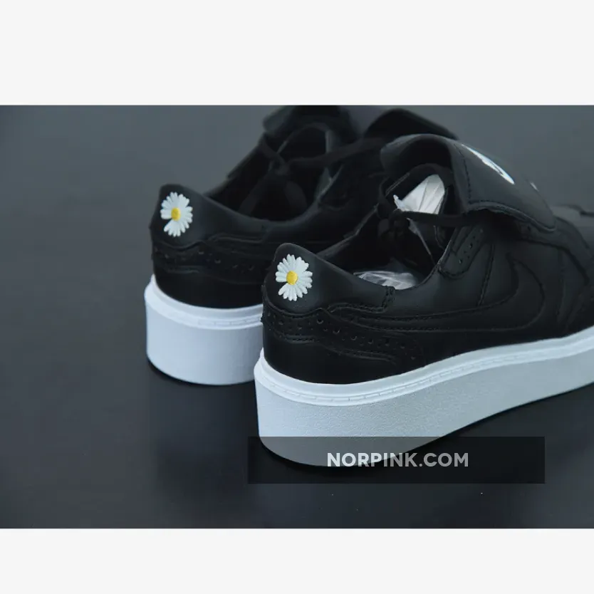 Inspired by taekwondo, G-Dragon’s legal name and the Swoosh’s “Just Do It” slogan, the Kwondo 1 features an all-White leather upper with brogue details taken from the Nike Tiempo and classic golf shoes. It comes with a detachable cover overlaying the lacing system allowing you to wear them in two different styles. Rounding out the design is PEACEMINUSONE’s signature daisy logo on the heels and soles.