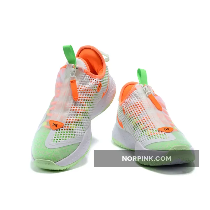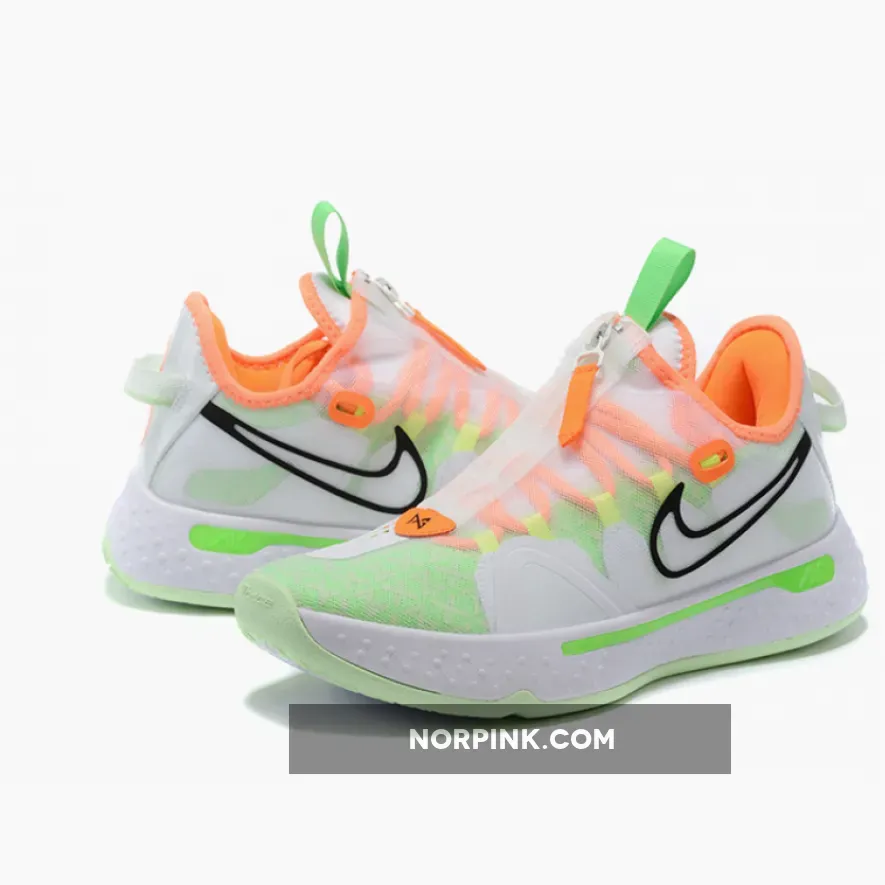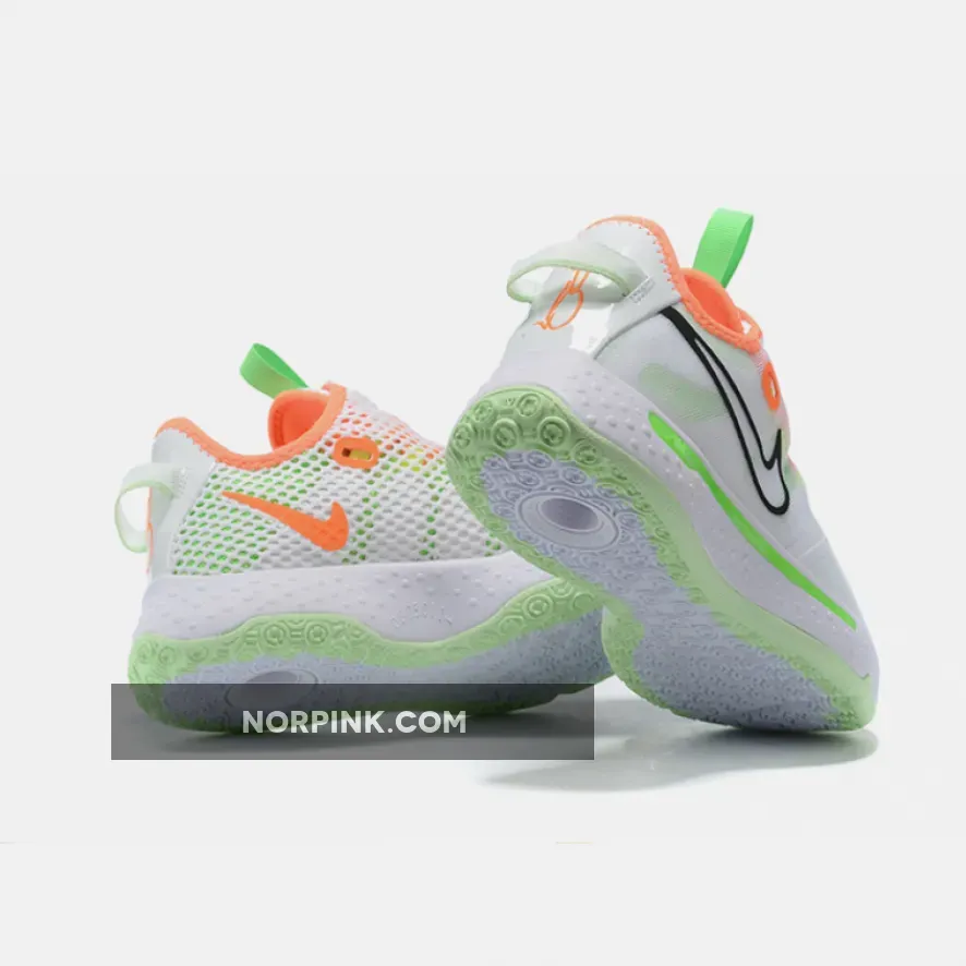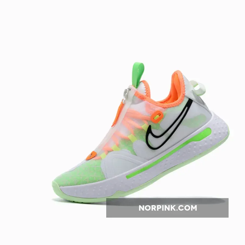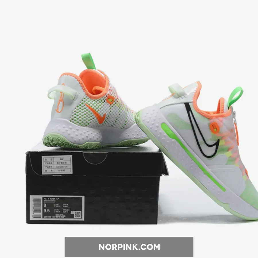The Nike PG 4 Gatorade White has a full-length Max Air under the foot, double mesh shroud, and a circular outsole that helps with the traction of the sneaker. The base of the shoe is white, and a combination of Neon Green, Bright Orange, and yellow overlay the base. Nike’s Swoosh can be found on both sides of the shoe, one in a thin black outline and the other in solid Bright Orange.