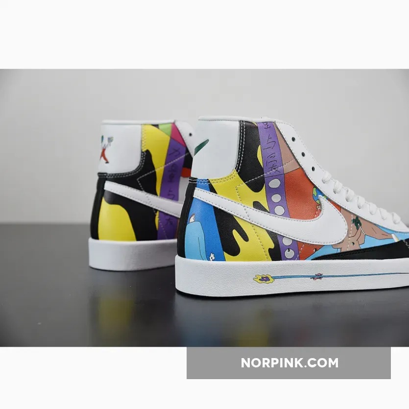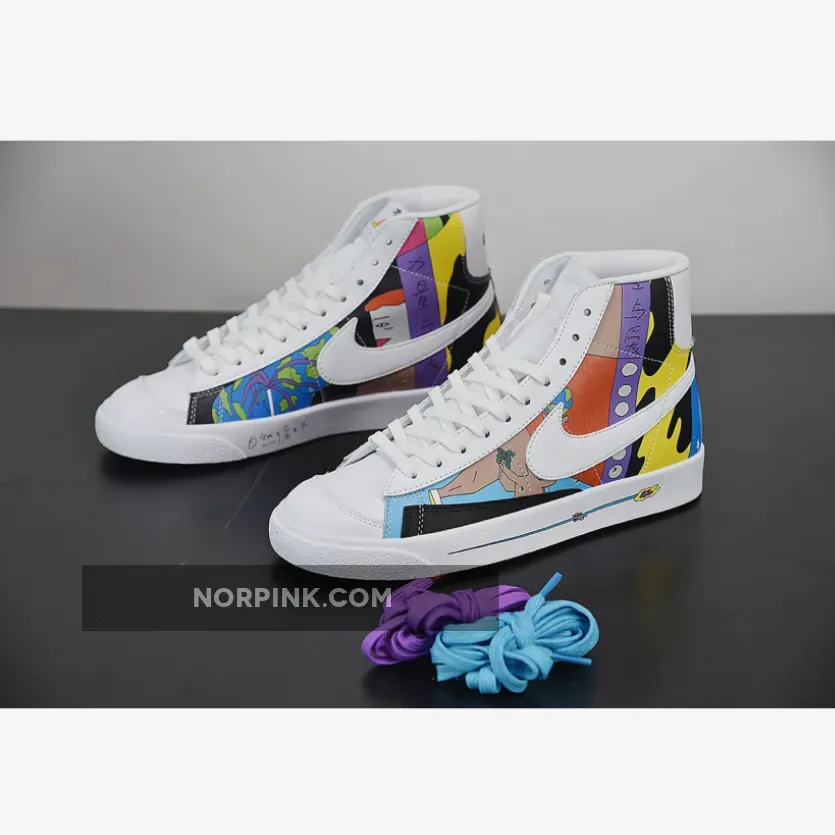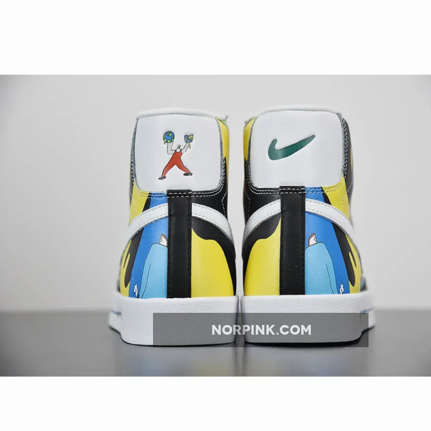 Since graduating from the Berlin University of Art in 2017, the China-born illustrator and painter has explored her multi-cultural background across public art installations, fashion, and product. As with previous work, her upcoming joint-effort with Nike is laden with neon color, which adds a bold aesthetic to the charming illustrations of Earth, people, legged-flora and swoosh logos found throughout the mid-top Blazer. Profile swooshes, toe boxes, and most of the tongue is left white, accentuating Wang’s graphics that much more. Tongue labels, just as heel panels, alternate between two hand-drawn images and/or text. All these images are printed onto Flyleather, a material made of at least 50% recycled natural leather fiber; fellow artist Steven Harrington worked on the same material for his “Earth Day” capsule in 2019. Underfoot, sole units are animated not only by the surreal-like flower on the lateral side, but also the all-purple outsole.