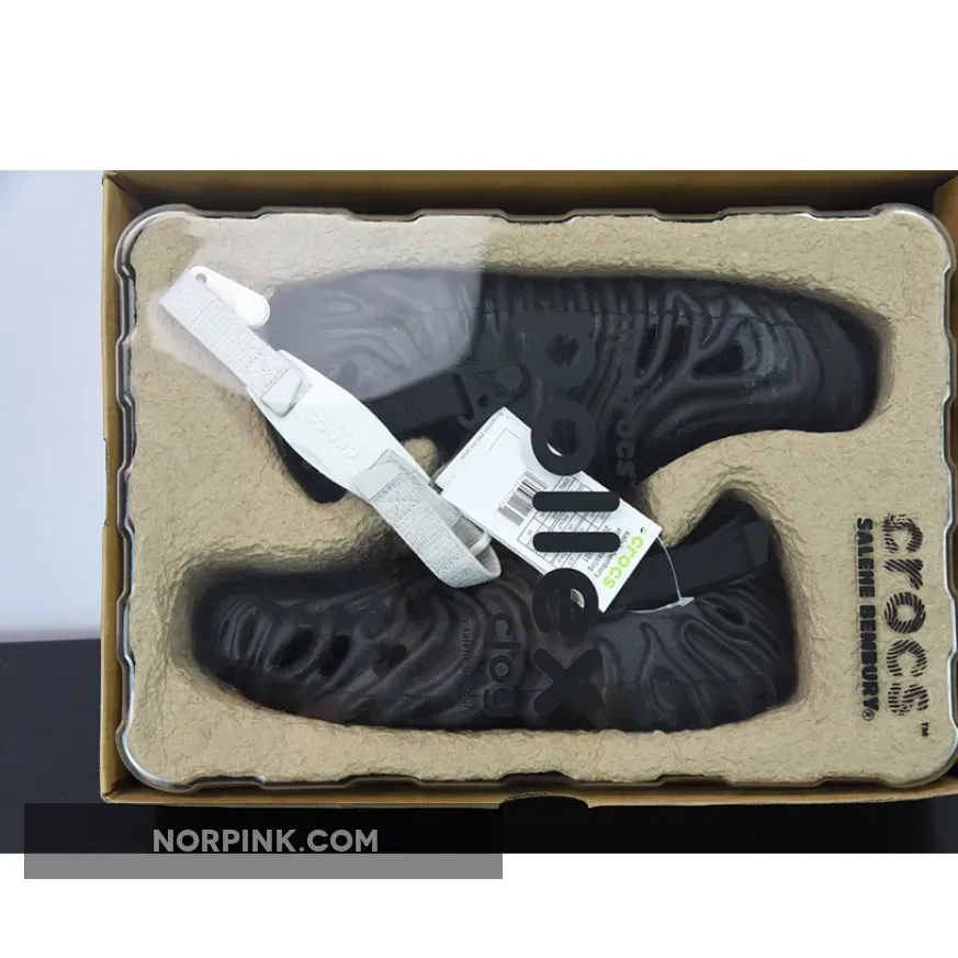 The “Sasquatch” marks the sixth iteration of the Crocs Pollex Clog, adding to the catalog yet another simple, neutral offering, which is effectively the opposite to the all-white look of the “Stratus.” Here, the fingerprint-inspired mold — whose grooves are modeled after Bembury’s own finger tips — are shrouded in a dark black; the attached strap follows suit, obscuring the various hardware and embossed Crocs branding. As indicated by the leaked imagery, an additional, white-colored strap is packaged alongside, allowing you to add a bit of contrast if you desire.