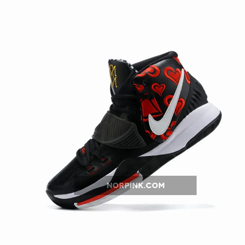 After working on the Kyrie 5 last year, Sneaker Room will once again pay tribute to both Irving and store owner Suraj Kaufman’s late mothers with special “Mom” colorways of the Kyrie 6. The shoes, which will be available in black, cream, and red styles, feature details inspired by Irving’s mother, Elizabeth, such as a polka dot liner to match a shirt she wore in a memorable photo. Kaufman also pays tribute to his mother with accents of gold, her favorite color. Each left shoe is embroidered with hearts, while the right features roses.
