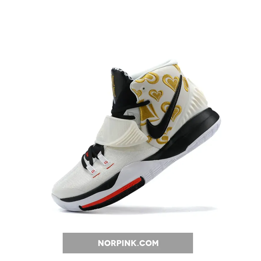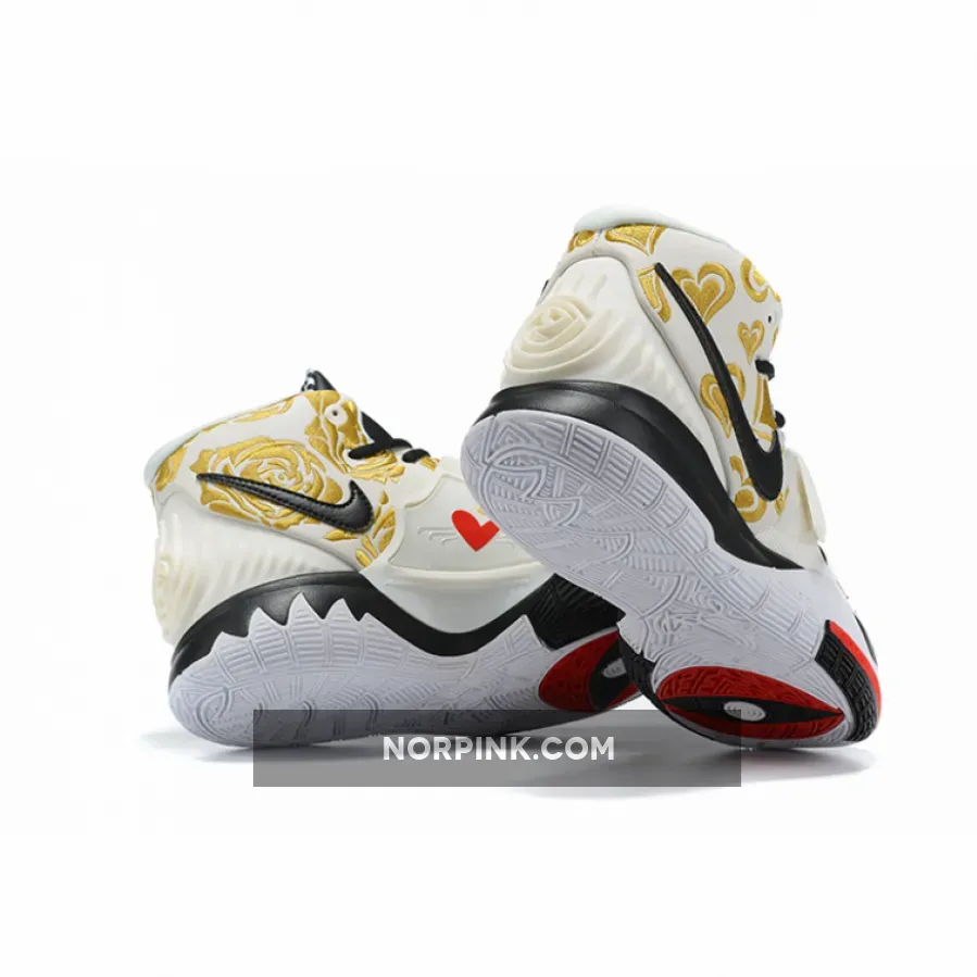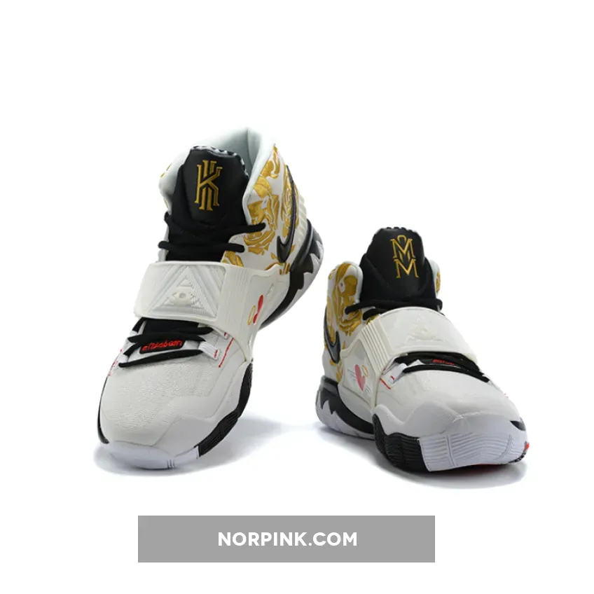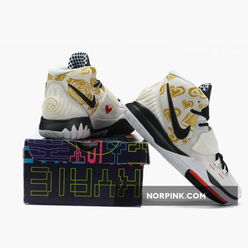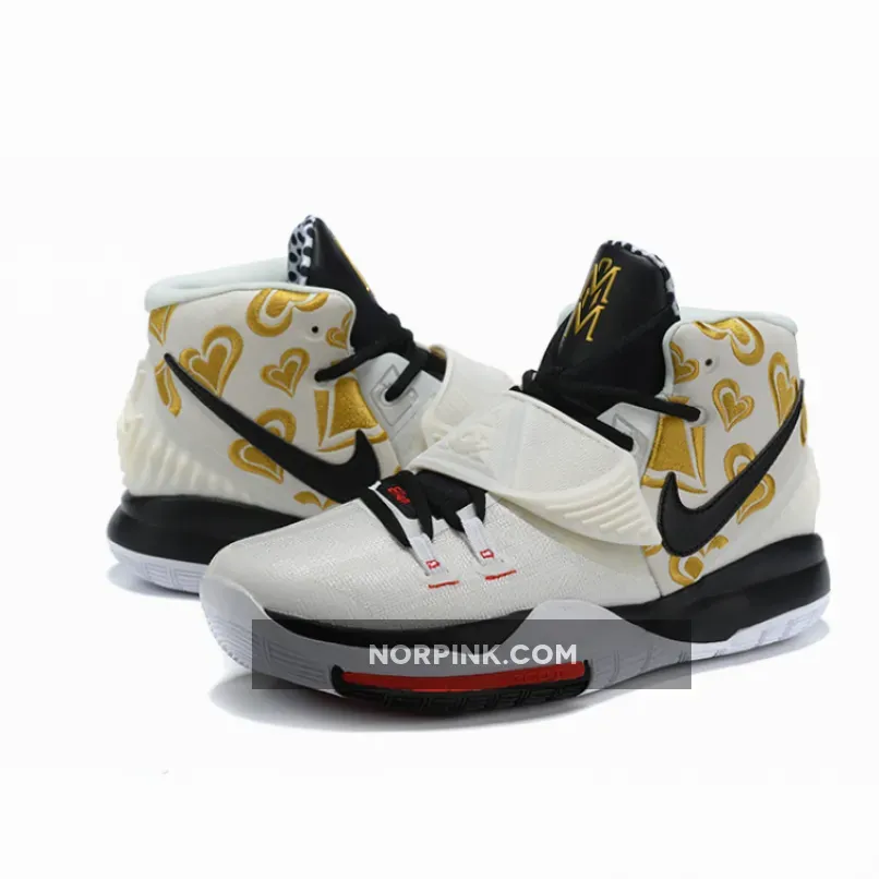 After working on the Kyrie 5 last year, Sneaker Room will once again pay tribute to both Irving and store owner Suraj Kaufman’s late mothers with special “Mom” colorways of the Kyrie 6. The shoes, which will be available in black, cream, and red styles, feature details inspired by Irving’s mother, Elizabeth, such as a polka dot liner to match a shirt she wore in a memorable photo. Kaufman also pays tribute to his mother with accents of gold, her favorite color. Each left shoe is embroidered with hearts, while the right features roses.