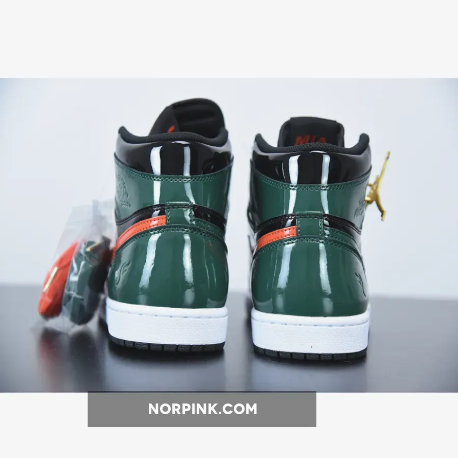 In addition to the leather pair, there is also a patent leather version that is limited to only 223 pairs. This version features Black and Green on one side, while the other comes with an Orange Swoosh on the medial side continuing the Miami color scheme. Both come with custom Miami insoles.