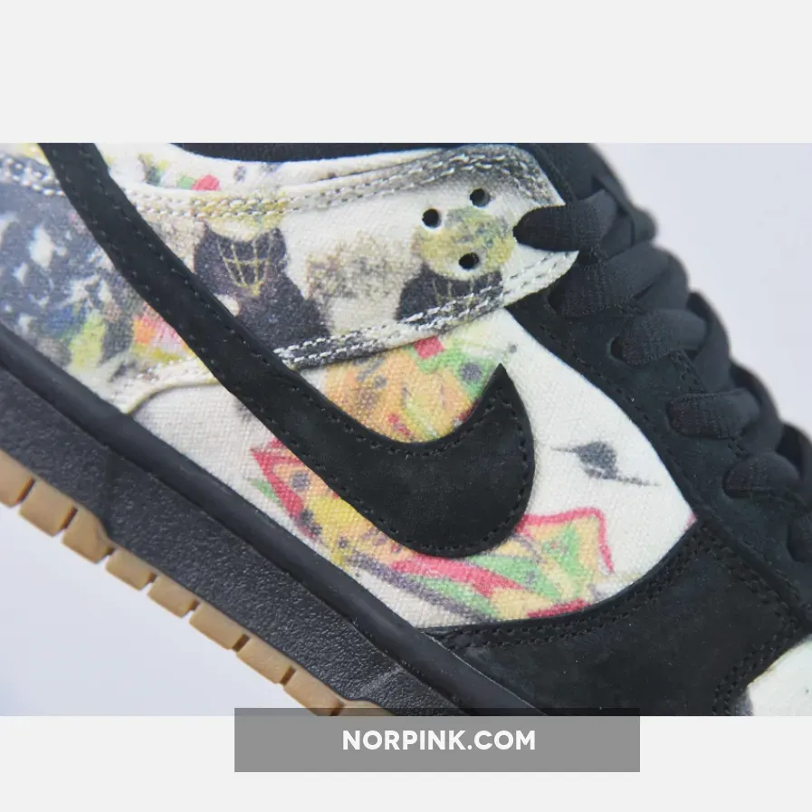 This offering of the Supreme x Nike SB Dunk Low upper is coated in a black upper crafted from suede and canvas materials. Highlighting the sneaker is Rammellzee’s artwork on the toe box, quarter panel, collar, and heel overlay. Other details includes Black suede overlays on the forefoot, eyestay, and Swooshe. Like past collabs, the shoe features a gold “SUPREME” lace dubrae that includes a co-branded hang tag. A Black midsole atop a Gum rubber outsole completes the design.