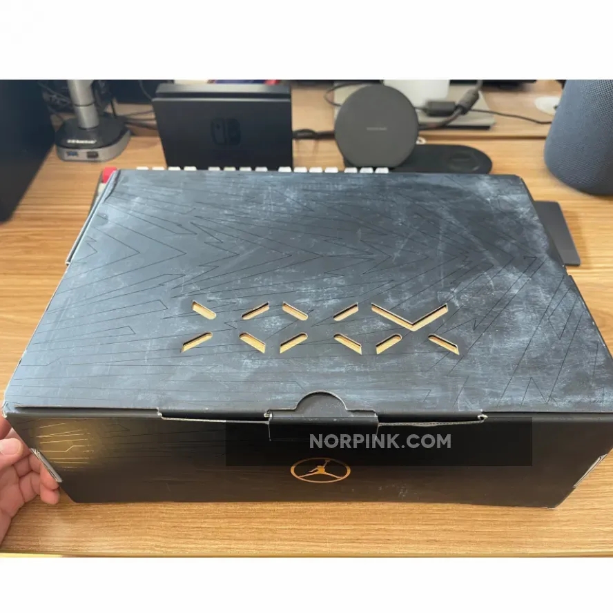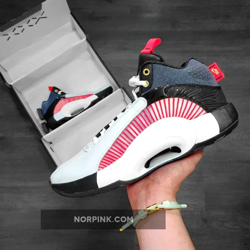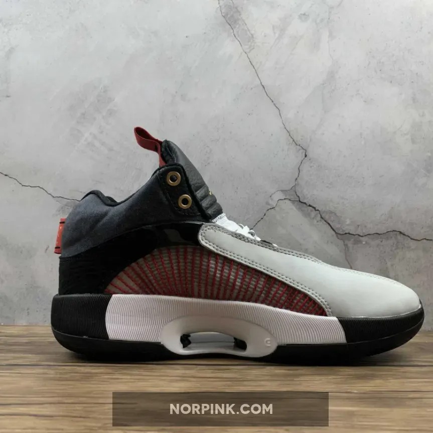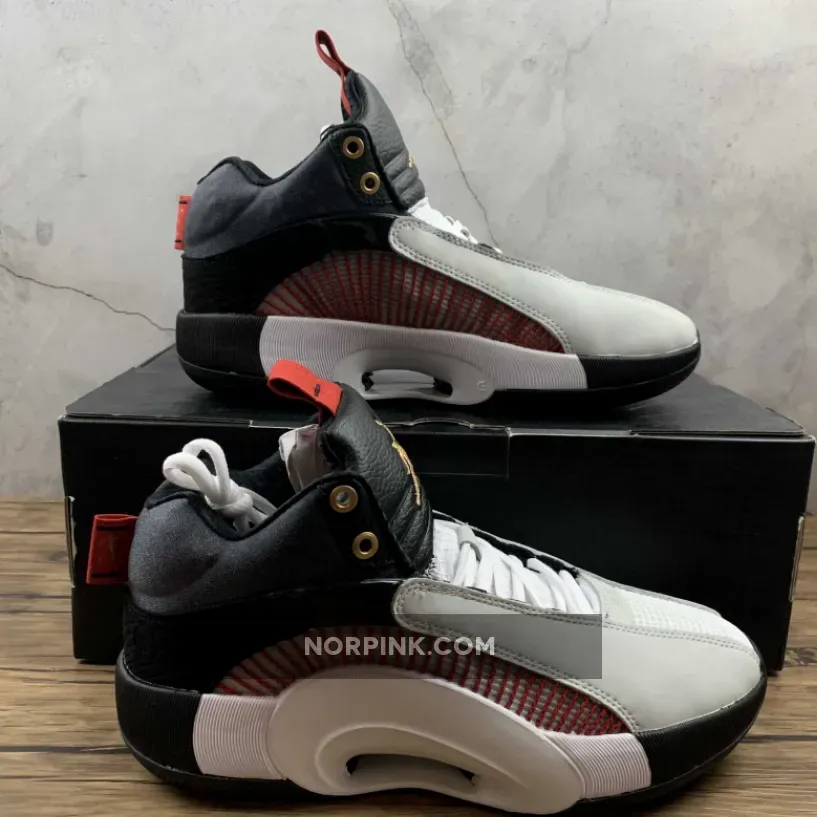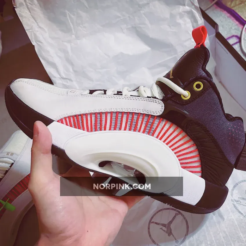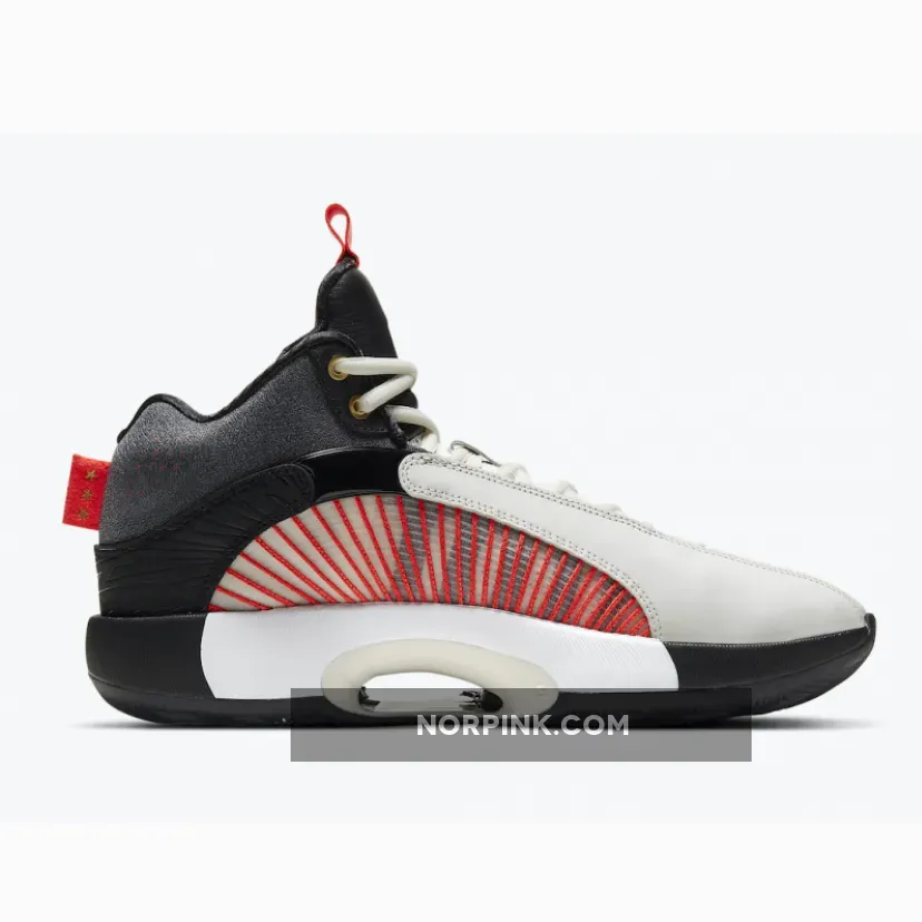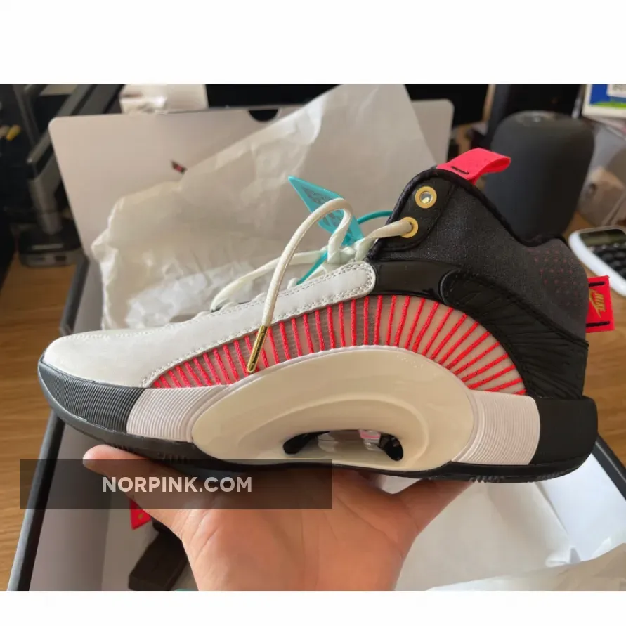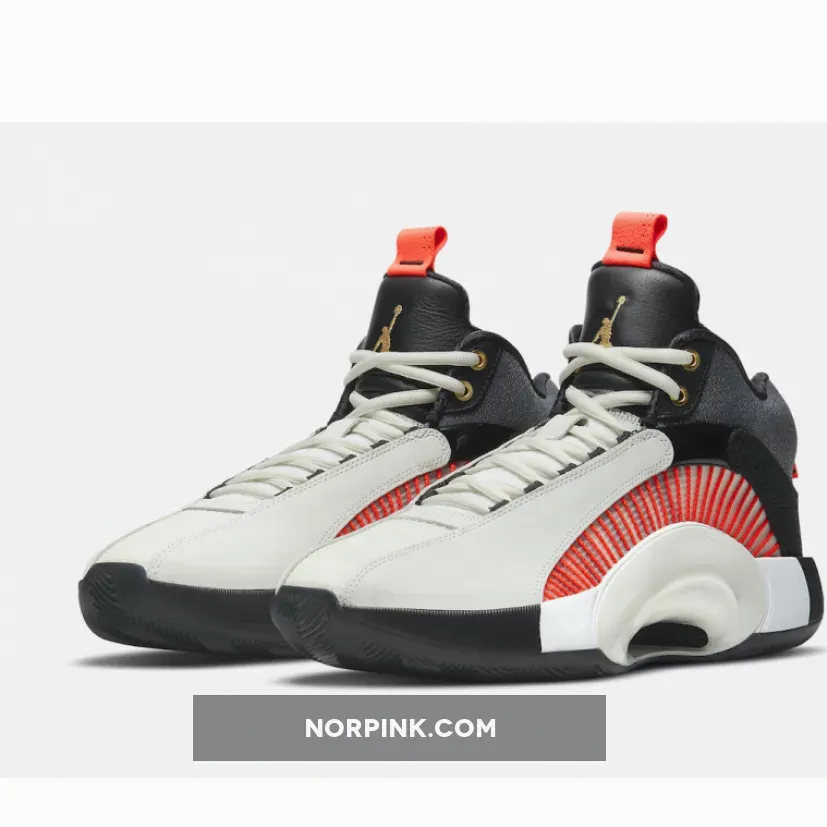 the Titan 22 x Air Jordan 35 will arrive in a palette of black, bone white, infrared, and gold, across premium leathers and fine suedes. Again it will feature the retailer’s signature lightning graphics, though this time it’s not as obvious at the 23’s contrast-stitched shroud, instead opting for debossed finished upon the rear overlay.