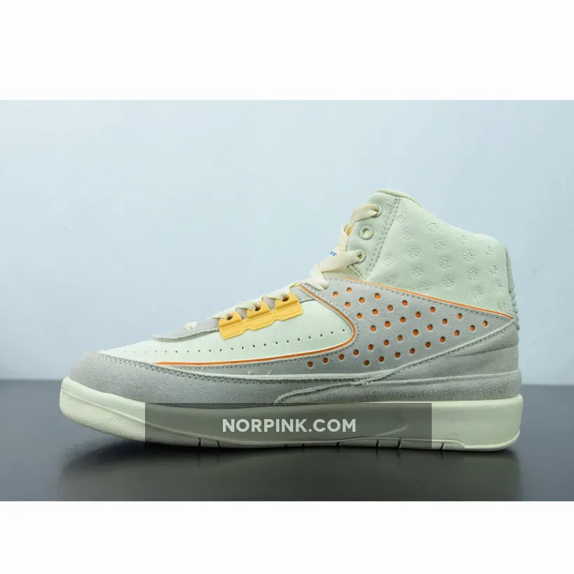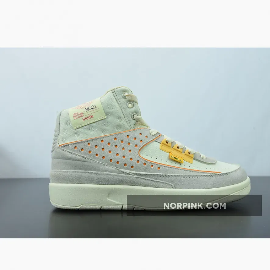 Right on the heels of the Off-White x Air Jordan collection is a fantastic new collab between Union, the renowned L.A. men’s fashion and streetwear shop, and Air Jordan. Meet the Union x Air Jordan 2 Rattan featuring bold colour blocking. It has a sibling in the Union x Air Jordan 2 Grey Fog dressed in cooler colours. This pair is in a Rattan/ Siren Red/ Orange Peel colourway. The base of the upper is in a Rattan smooth leather and is perforated on the toe box. A vivid Orange Peel appears on the mid-panel up to part of the eye stay and is outlined in Siren Red.