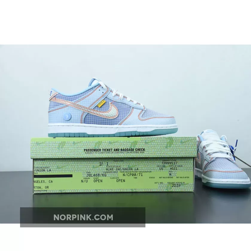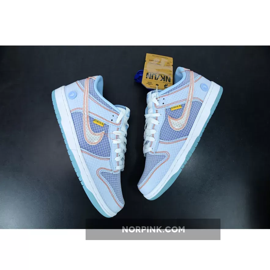 Union LA x Nike Dunk Low Blue Purple offers a stylish & functional design. The hidden premium leather layer & semi-translucent outsole make it unique. Quality & comfort in a premium pack! 🤩
