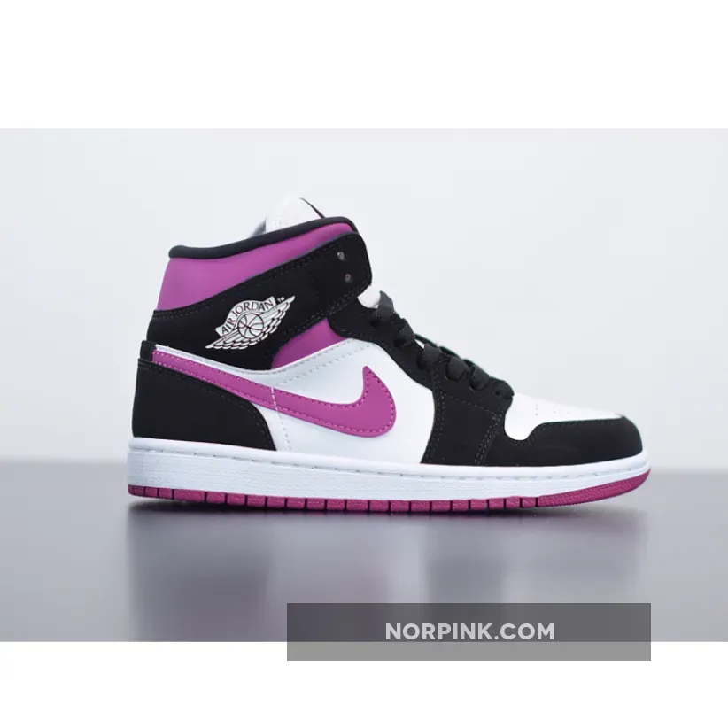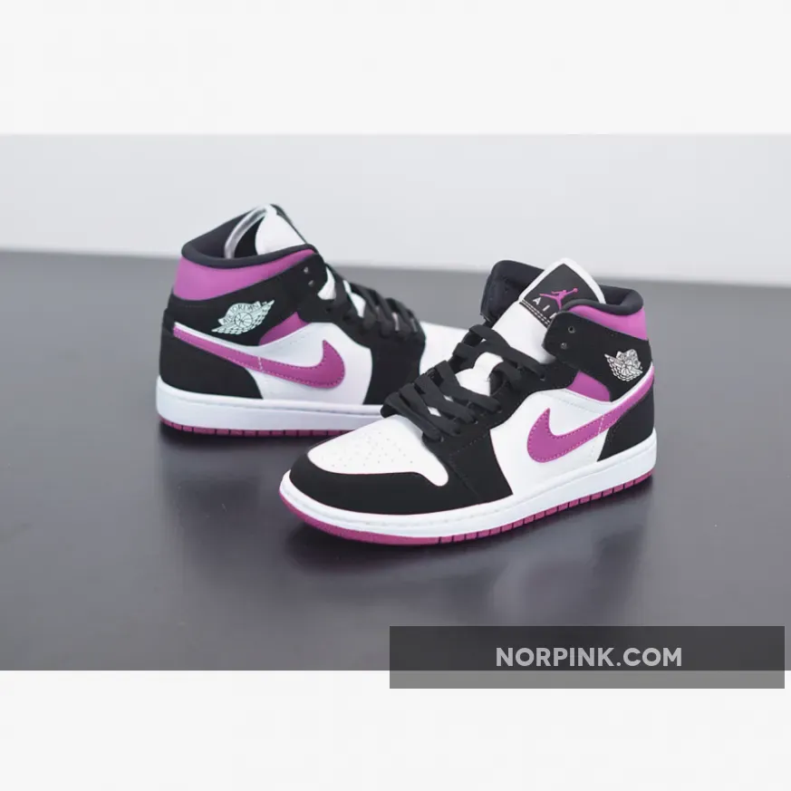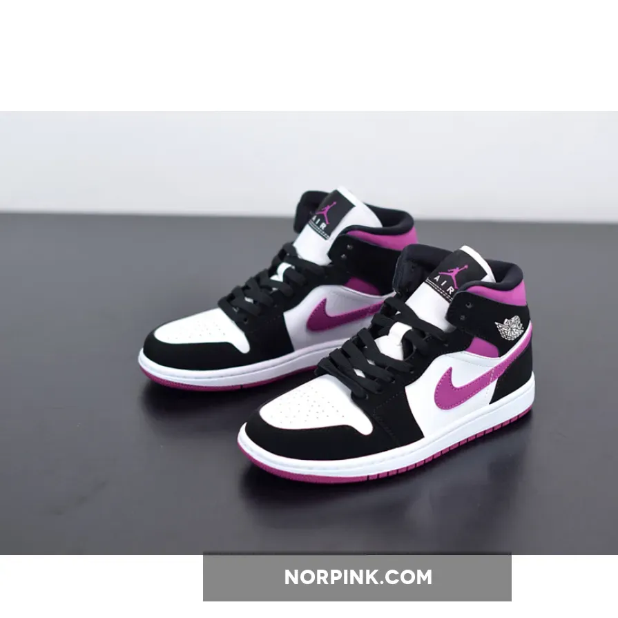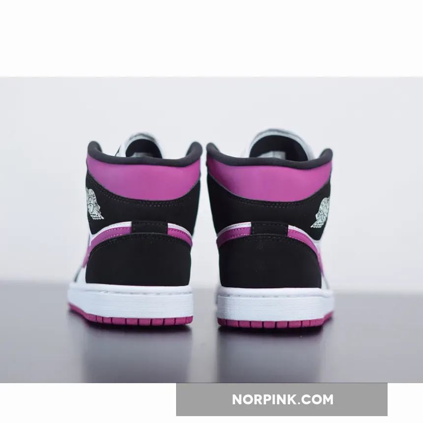 Here you’ll find this Air Jordan 1 Mid “Magenta” decked out in its traditional white leather base, with overlays in the Mid-standard black Nubuck. The aforementioned pops of fuchsia arrive around the collar, Swoosh, and outsole — a blocking we’ve seen several times from the silhouette over the past few years. White nylon tongues arrive with Jumpman-branded black tags, with matching magenta Jumpmen printed on the insoles. Completing the design are clean white midsoles and debossed white Wings motifs upon the collar.